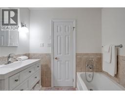 This stunning townhome offers 3 bedrooms, 2.5 baths and backs onto a beautiful ravine in Tyandaga! This updated unit boasts almost 1600 square feet of well-appointed space PLUS a finished walk-out lower level! The main level has hardwood flooring throughout, a large family room with a gas fireplace and separate dining room. The kitchen features solid wood cabinetry, stainless steel appliances, quartz counters and a stone backsplash. The main level also has a 2-piece bathroom and screened in porch overlooking the ravine. The upper level includes 3 spacious bedrooms and hardwood flooring throughout. The primary bedroom has a 3-piece ensuite, walk-in closet and its own private screened in porch overlooking the ravine. There is also a 4-piece main bath with a separate tub and shower. The walk-out lower level has vinyl flooring, a large family room with plenty of natural light, a gas fireplace, a laundry room and plenty of storage space! The exterior of the home features a single car garage and beautiful landscaping. The private gated backyard patio overlooks the ravine. This quiet complex boasts an in-ground pool, party room and full snow removal / grass cutting! Situated in a quiet, family friendly neighbourhood and close to schools, parks and all amenities! (id:46441)