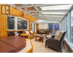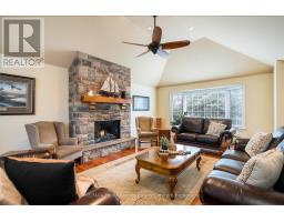Desirable Lockhart neighbourhood! Situated on a beautifully landscaped estate lot, this custom-built family home (5 Bedrooms/4 Bathrooms) has been meticulously maintained and thoughtfully upgraded throughout. Backing onto Kinsmen Park, the property offers exceptional privacy and a serene natural setting. Enjoy year-round comfort in the stunning three-season glass solarium (23.9 X12.10 sf ), complete with an integrated hot tub and Chantico glass fireplace-an ideal space to relax or entertain. The spacious kitchen features granite countertops, a breakfast bar, and flows seamlessly into a large dining area with a custom gas fireplace, perfect for family gatherings. A bright family room with cathedral ceilings and an additional gas fireplace provides a warm and inviting atmosphere. Second level~ The primary suite serves as a private retreat, offering a soaker tub, glass shower, walk-in closet, and scenic views toward Osler Ski Resort, two generously sized bedrooms and a 4-piece bath. A versatile main floor bedroom, currently used as a den, is ideal for guests or a home office. Great space in the fully finished basement is designed for entertaining, featuring a quality pool table, spacious bedroom, 3-piece bath, and separate access to both the garage and backyard-ideal for potential in-law accommodation. Car enthusiasts will appreciate the oversized Double garage (22 X 22 ft), while the fully fenced backyard offers a private outdoor oasis with expansive decking (610 sf) a custom shed, perennial gardens, and the solarium as its centerpiece.16 Carmichael Crescent is a timeless home offering 4500+ sq ft of living space (including solarium), situated on a quiet crescent surrounded by lovely homes. Walking distance to 4 schools~ Admiral Collingwood, Notre-Dame de Huronie, Our Lady of the Bay, and CCI, as well as downtown, trails, and recreation. Southern Georgian Bay offers a fabulous lifestyle all seasons on the sparkling blue water of Georgian Bay! View the Virtual Tour (id:46441)