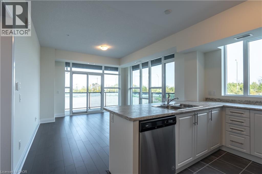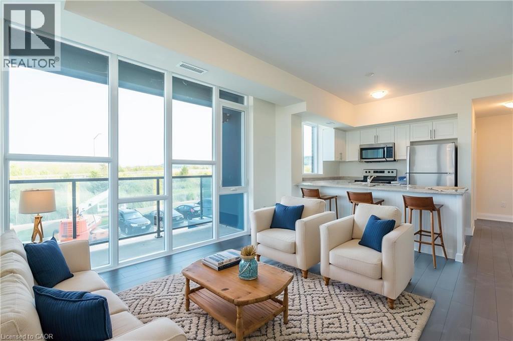 Welcome to unit 213 at 16 Concord Place. This gorgeous corner unit features 876 sqft of luxury living with 2 bedrooms, 1 bathroom and stunning finishes! Fantastic location in the desirable Grimsby Beach Community with spectacular views of Lake Ontario and the Niagara Escarpment. Enjoy quality features throughout including floor to ceiling windows providing tons of natural lighting, walnut hardwood flooring, high ceilings, in-suite laundry and a spacious private wrap around balcony which overlooks Lake Ontario. Entertain in the open concept living and kitchen area with stainless steel appliances, sleek white cabinetry, premium countertops and breakfast bar. Enjoy the 2 spacious bedrooms with the primary featuring a walk-in closet and 4-piece semi-ensuite. The unit also offers 1 underground parking spot and a storage locker. The Aquazel condominiums offer exceptional amenities such as a modern lobby with a concierge, fitness centre, outdoor inground pool, party room, media room and visitor parking. Incredible location in the heart of Grimsby’s sought after waterfront community just minutes away from Lake Ontario, local amenities, restaurants and easy highway access to QEW. This unit is a MUST see! Book your private showing today! (id:46441)