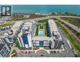 Outstanding one bedroom plus den with modern finishes and view of lake and courtyard patio and pool. Raised breakfast bar in kitchen with full sized s/s appliances and backsplash, Large custom glass shower in bathroom. Oversized walk-in closet in bedroom. Roller blinds on floor to ceiling windows. UTILITIES INCLUDED & one underground parking space and storage locker. Enjoy the fantastic amenities at Aquazul, with pool, bbq area & patios, party room and games rooms. Located in the heart of Grimsby on the Lake with shops and restaurants and water front beach trails . (id:46441)