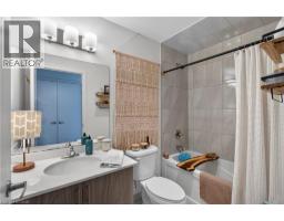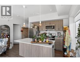 Welcome to the pinnacle of contemporary condo living in Ancaster’s prestigious Monterey Heights at 16 Markle Crescent. This 2 bdrm, 2 bath penthouse corner suite offers 857 sq ft of refined living space, thoughtfully designed w/ an open-concept layout that maximizes light, flow, & functionality. The kitch is both stylish & practical, feat S/S app, an attractive tiled backsplash, striking pendant lighting, & a generous centre island w/ seating for 3+ - perfect for casual dining or entertaining. The space seamlessly connects to a formal din area w/ sliding doors that lead to a private covered balcony, creating an effortless indoor-outdoor lifestyle. The form liv rm is framed by dramatic flr-to-ceil windows, flooding the suite w/ natural light & showcasing elevated penthouse views. The primary retreat offers comfort and privacy, complete w/ a 3-pc ensuite w/ an oversized glass shower. A well-proportioned 2nd bdrm & a full 4-pc bath w/ a shower/tub combo provide flex for guests, family, or a home office. In-suite laund adds convenience. This suite also includes 1 underground parking space & a dedicated storage locker (#9). Monterey Heights delivers exceptional amenities designed for modern living, incl a well-equipped fitness centre w/ cardio/strength equip, a yoga/stretch area, & an elegant party lounge w/ a chef-inspired kitchen. The outdoor terrace features multi seating areas - ideal for gathering w/ friends or relaxing on warm summer evenings. Secure entry, underground parking, & meticulously maintained common areas enhance peace of mind. Situated in a convenient location, this address places you steps to shopping, restaurants, groceries, & everyday essentials. Quick access to Highway 403 ensures effortless commuting, while nearby parks, trails, golf courses, & top-rated schools complete the offering. Penthouse living, premium amenities, & an unbeatable Ancaster location - a rare opportunity to enjoy carefree luxury in one of the area's most sought-after buildings. (id:46441)