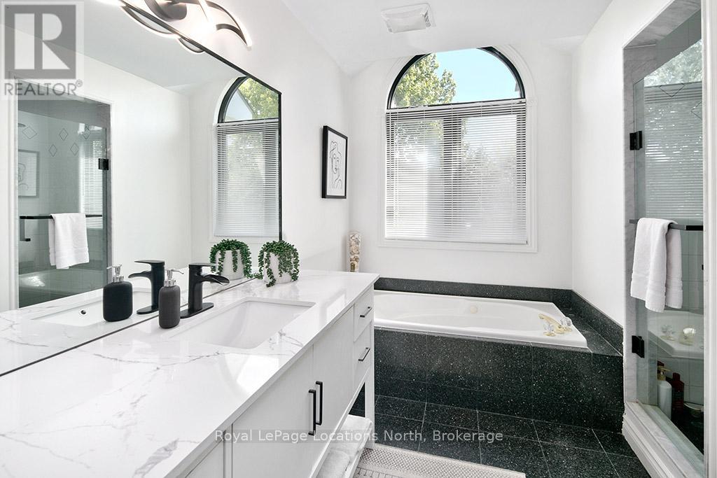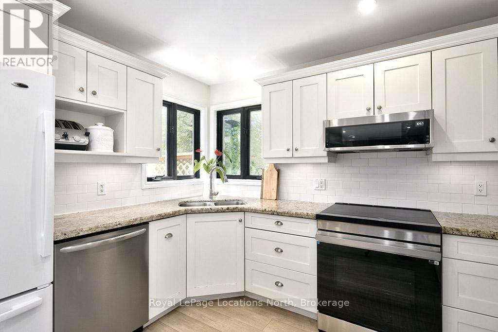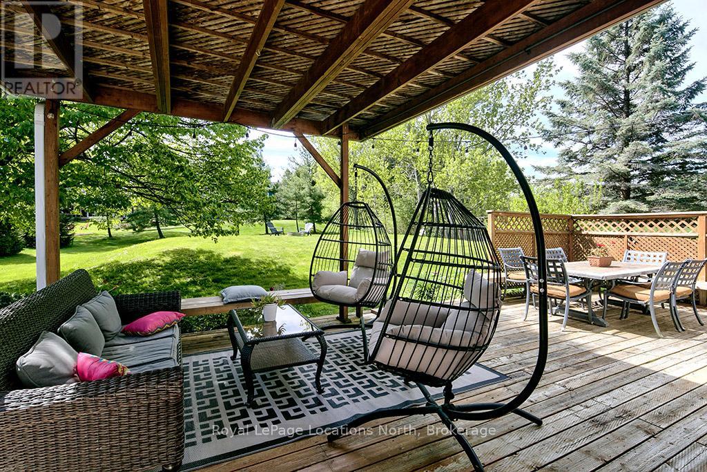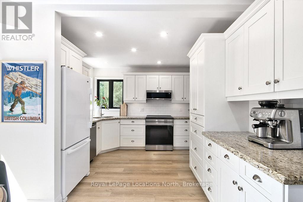 Now offered at a New Price - your chance to live the coveted Blue Mountain lifestyle awaits. Set on half an acre in the prestigious Mountain View Estates, this beautifully updated 3-bed, 2.5-bath home offers the ultimate four-season lifestyle - with the areas best outdoor amenities at your fingertips. Enjoy world-class skiing at Blue Mountain, unwind at Scandinave Spa, bike or hike the nearby trails, or paddle on Georgian Bay - all just minutes away. Conveniently located near Collingwood's shops and services, and a short drive to the charming town of Thornbury. This sun-drenched property boasts coveted south-west backyard exposure, flooding the home with natural light and offering beautiful afternoon sun. One of the rare few, this home includes deeded access to a private, forested 6-acre parcel with a meandering creek and peaceful trail system - perfect for scenic dog walks or cross-country skiing, right from your doorstep. Inside, a series of thoughtful renovations enhance comfort and style: new flooring, paint, trim, pot lights, water purification system, furnace - heat pump - water heater (2024), and a newly finished rec room in the lower level (2025). The main floor features a charming sitting area with an architecturally interesting window connecting to the formal dining space. At the back, the open-concept kitchen, eat-in nook, and cozy TV room are framed by walls of windows and walk-out access to the full length back deck - ideal for entertaining on warm summer nights. A powder room and laundry with garage access complete this level. Upstairs, the spacious primary retreat offers a walk-in closet and spa-like ensuite, while two additional bedrooms share a 4-piece bath. The lower level includes a newly finished recreation room plus an expansive unfinished area ready for your vision - or perfect as-is for storage. Whether you ski, bike, hike, or simply enjoy nature, this is a rare opportunity to live the best of the Blue Mountain lifestyle. (id:46441)