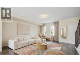 Spacious 3 bedroom, 2.5 bath freehold townhome located in convenient Stoney Creek mountain location, close to parks & schools with easy highway, LINC, Redhill access. Open concept design on main floor with spacious kitchen boasting large island with breakfast bar and generous sized dinette area with easy access to elevated 19ft x 10ft balcony for outdoor grilling or lounging options with panoramic lake views. Finished ground level family room or flex space and easy garage access pushing the finished living space to over 2000 sqft for your use. Wood style flooring throughout living room area and also featuring stainless steel appliances with built in dishwasher and draperies throughout. Upper level offers 3 generous bedrooms, master with ensuite and oversized shower plus convenient 2nd floor laundry. Single car garage with garage door opener and single drive allows for 2 car parking. No fenced yard available, RSA. (id:46441)