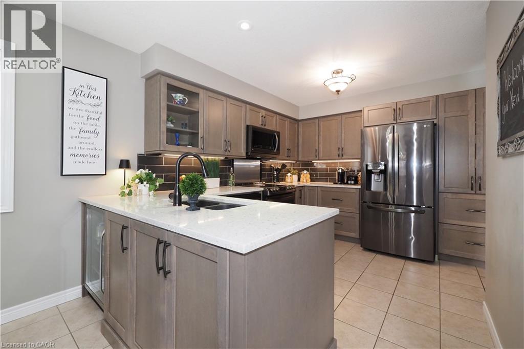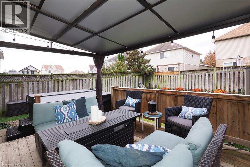 MUST-SEE HOME WITH SPACE, STYLE & LOCATION! This three-storey brick and vinyl home offers the perfect blend of modern updates and abundant living space in a commuter-friendly spot, just minutes from Highway 401. The main floor impresses with a new upgraded maple kitchen (2022) with pantry and large drawers that are soft close, featuring granite countertops, LG grey stainless steel fridge with ice & water, induction stove, dishwasher, built in microwave and a stylish backsplash to blend it all in. New LR flooring flows seamlessly through the bright living room into the dinette, where patio doors open to a backyard relaxation zone featuring a deck, a fenced yard, a gazebo, a hot tub, and a handy storage shed. A convenient powder room and inside access to the garage complete this main level. Upstairs, you’ll find three comfortable bedrooms and a full 4-pc bath, the primary suite has its own electric fireplace and private 3-piece ensuite bath and walk in closet. Even better, stairs lead to the third-floor loft with a large dormer, an inviting, light-filled space with a cozy gas fireplace that works perfectly as a fourth bedroom, home office, games room, or family lounge. The finished basement extends your options with a large L shaped recreation room, 2-pc bath, cold room and utility/laundry/furnace area. Set near schools, parks, trails, shopping, golf, and the Hespeler arena and library, this home combines comfort and convenience, making it ideal for growing families and busy commuters alike. DON’T WAIT BOOK YOUR SHOWING TODAY. (id:46441)