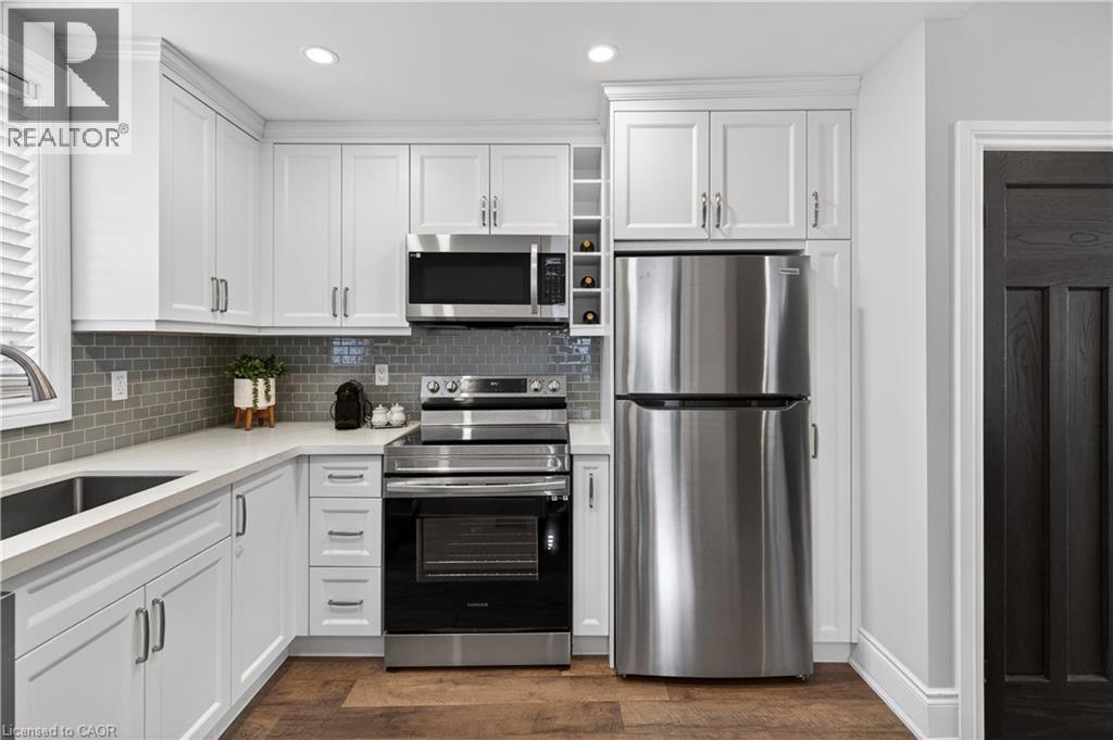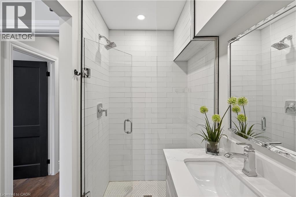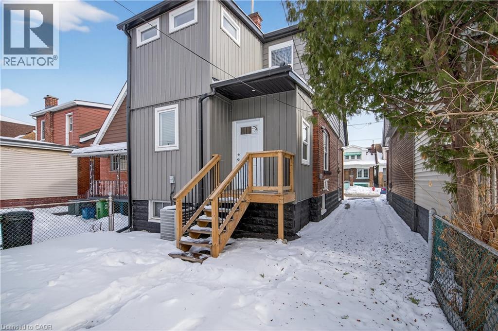 Welcome to 161 Connaught! This stunning family home has been completely reimagined from the ground up, blending timeless character with exceptional modern upgrades rarely found in the neighborhood. The open-concept main floor is flooded with natural light through all-new windows, creating a warm, airy space ideal for both daily living and entertaining. The completely new kitchen features custom cabinetry, quartz countertops, stainless steel appliances, and a dishwasher — designed with both style and function in mind. Upstairs boasts 3 bedrooms complete with closets, and a stunning spacious master bathroom with double vanity sink, brand new bathtub with a gorgeous tile floor and loads of space for additional storage. The sunny master bedroom also contains a beautiful en suite bathroom featuring a full glass shower, a feature unheard of in this style of home. Cozy up on the redone front porch, or enjoy the private backyard, accessible through a full length driveway, a bonus in the neighborhood. Big value add in a full size and completely refinished garage. Every inch of this home has been thoughtfully redone including brand new windows, electrical, plumbing, furnace, central AC, laundry, appliances, full spray foam behind the walls. Near the Bernie Morelli community centre, Tim Horton's stadium, Ottawa street shopping and the forthcoming LRT, the location is ideal for a family to start making new memories. A impeccable, truly turnkey home, 161 Connaught is just waiting for you! (id:46441)