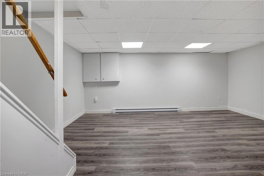 Excellent property fully deep cleaned and ready to move-in for tenants. A townhouse condo with modern touches. Upper floor has 3 bedrooms and a 4 piece bath with soaker/jet tub. Galley kitchen has an abundance of cupboard space. The main floor living room boasts a gas fireplace and access to the backyard and open greenspace. Basement includes a finished rec room with laminate floor and separate unfinished laundry and furnace room with plenty of storage potential. Super close to hwys 7/8 and 401 and every amenity your family could need: mall, restaurants, movie theater, schools and recreational opportunities. (id:46441)