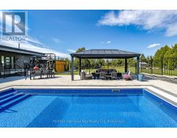 Every Once in awhile a Special Home comes along! This Modern Architectural Custom Built Bungalow Blends All The Current Luxuries You can Dream of In A Warm And Inviting Setting. This is a True Entertainer's Paradise Nestled On a Private 1.5 Acre Lot. The Great Room has Soaring Vaulted Ceilings And A Wall Of Windows Overlooking The Countryside. Open Concept Kitchen/Living/Dining Boasting Custom Framed Cabinetry With a 10' Island & Extra Sink. Top of the Line Appliances. Main Floor Primary Suite With A Huge Walk In Closet & Beautiful Ensuite. This Resort Style Oasis Boasts a 16 x 30 ft Heated Salt Water Pool, Outdoor Pergola, Hot Tub with Multiple Seating Areas To Enjoy The All Day Sun! Plenty Of Room For Extended Family Or Large Gatherings With Almost 5000 Square Feet with a Professionally Finished Basement. 3 Bedrooms On Main Level (Or Main Floor Office) Plus 2 Bedrooms & Huge Family Room in Basement with 2 more Bedrooms. Inside Entry from Garage to Main & Lower Floors. 38 x 37 Ft Garage/Shop That Accommodates 3+ Cars, Driveway Parking For Approx. 15+ Vehicles or Turn it into your own Pickleball Court. Far Too Many Features To List - Be Sure To Watch Virtual Tour. (id:46441)