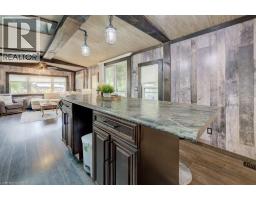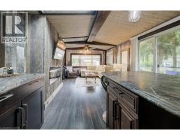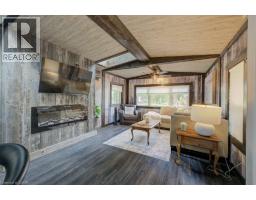 Ideal for snowbirds or mature adults seeking affordable seasonal living, this 60-foot trailer with a 12’ x 12’ addition is nestled in the exclusive seasonal section of a quiet, family-friendly park—just 10 minutes from New Hamburg and 30 minutes from Kitchener. Enjoy a spacious deck with water views, mature trees, and close proximity to the community centre. Inside, the open-concept layout features a kitchen with island, rustic barn board accents, stylish lighting, and an electric linear fireplace. Oversized skylights, new blinds, and abundant windows fill the space with natural light. The primary bedroom includes a sitting room or den, separated by mirrored French doors and opening directly onto the deck. The bathroom features a tiled shower, and the unit is roughed in for both laundry and a dishwasher. WiFi is available. Set in a park offering a 45-acre spring-fed lake, beach, pool, and hot tub. Seasonal occupancy permitted up to 9 months per year. (id:46441)