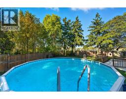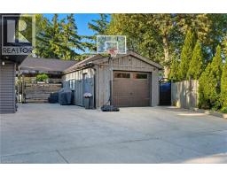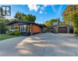 Beautifully updated home backing onto Macassa Park! Features newly renovated bathrooms (incl. oversized shower), bright open-concept layout, and a 21ft above-ground pool (2020). The large brushed concrete driveway fits up to 6 cars and leads to an impressive L-shaped detached garage/workshop (2 sections, each 14x20’) with 13ft ceilings, natural gas heat, 100amp service, car hoist, spray foam insulation, and metal roof (2015). Windows replaced in 2018. Move-in ready with exceptional indoor-outdoor living! (id:46441)