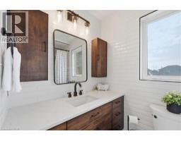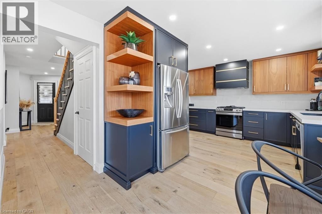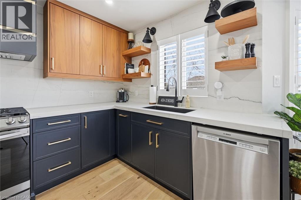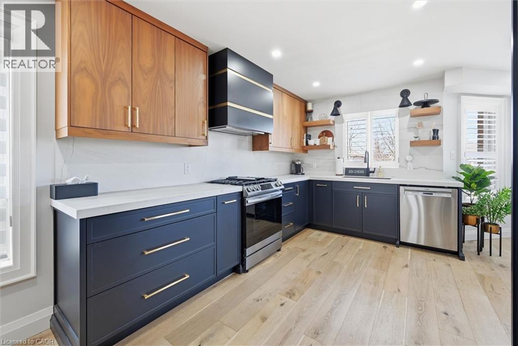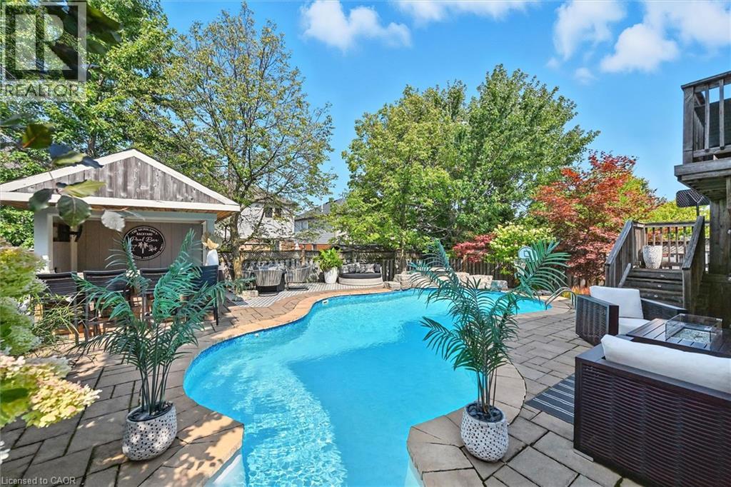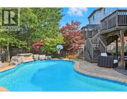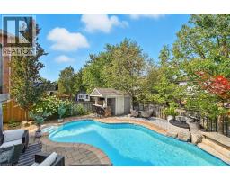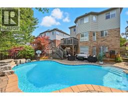 Welcome to 17 Fenwick Place, located in the highly desirable West Waterdown neighbourhood, close to parks, shopping, transit, and major commuter routes. These gorgeous “site lines” enhance this beautifully updated home. Offering 2817 sq ft. 4+1 bedrooms and 2+2 bathrooms, combining style, comfort, and functionality throughout. Freshly painted and tastefully finished, the home features a stunning designer kitchen with Neolith Mont Blanc countertops and backsplash, complemented by custom black and walnut cabinetry. Elegant white oak hardwood flooring flows through the main and upper levels, while the finished basement features durable Pergo vinyl flooring. The home also offers modern, spa-inspired bathrooms, multiple walk-in closets, and a convenient laundry/mudroom. Additional highlights include dual shade window coverings, California shutters on the main and lower levels, and thoughtfully designed custom built-ins throughout. The bright, fully finished basement extends the living space with a cozy gas fireplace and a walkout to the backyard. Step outside to a private, fully fenced yard, an entertainer’s dream featuring a heated saltwater pool and plenty of space to relax and unwind. (id:46441)
