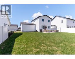 Welcome to the charming town of Belmont, just south of London, where modern design meets small-town living. Situated on a quiet, family-friendly court, this beautifully maintained 4- year-new detached home sits on an impressive 57 x 157 ft lot and offers the perfect blend of style, space, and comfort. The exterior features a double car garage with convenient interior access, a 4-car driveway, and a fully fenced backyard with durable vinyl fencing. Inside, you're greeted by soaring 9-ft ceilings, luxury vinyl flooring, and a bright open-concept main floor designed for both everyday living and entertaining. The spacious living room, highlighted by a large picture window, flows seamlessly into the stunning kitchen featuring white shaker cabinetry, stainless steel appliances, a double sink, and a breakfast bar overlooking the generous dining area with elegant custom wall moulding. Large rear windows and a sliding glass door fill the home with natural light and lead to the impressive concrete patio and oversized pool-sized backyard - perfect for relaxing, entertaining, or creating your dream outdoor retreat. Upstairs, the warm plush carpeting adds comfort throughout. The primary suite offers a true retreat with a king-sized walk-in closet complete with custom organizers and a private spa inspired 3-piece ensuite. Two additional queen-sized bedrooms feature double closets and large windows, and share a well-appointed 4-piece bathroom. The unfinished basement, complete with large above-grade windows, offers excellent potential for additional living space tailored to your needs. A fantastic opportunity to own a stylish newer home on a premium lot in one of Belmont's most desirable family settings. Families will appreciate Belmont's small-town charm with convenient access to the Belmont Arena & Community Centre, sports fields, library, parks, playgrounds, trails, and a growing school community. (id:46441)