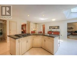 Opportunities like this don’t come around often! Nestled at the top of a quiet private court and backing onto greenspace, this impressive home is located in one of Waterloo’s most prestigious neighbourhoods. Boasting over 4,000 sq ft of beautifully finished living space, this property has seen numerous recent updates. From the moment you arrive, the grand curb appeal is undeniable, with manicured grounds, a spacious front porch framed by stately columns, and striking modern brickwork. Step inside to a spacious foyer that opens into a timeless, traditional layout featuring formal living and dining rooms, a main floor den or office, and a generous kitchen complete with a large island, skylight, built-in appliances, and a walkout to the backyard. The family room is equally impressive—and don’t forget, this level features not one, but three fireplaces! Upstairs, the home has been completely redesigned with a sleek, modern touch. The primary suite offers a spacious walk-in closet and a luxurious private ensuite with heated floors and a curbless glass shower. 3 more bedrooms—2 with walk-in closets all share a well-finished family bath and maintain the home’s overall quality. The lower level is ideal for unwinding or movie nights, featuring a stunning custom feature wall that sets the perfect mood. Just steps (120m) from the private community pool and tennis courts, this is a rare chance to live in a coveted neighbourhood with all the space and style you’ve been waiting for. Don’t miss it! (id:46441)