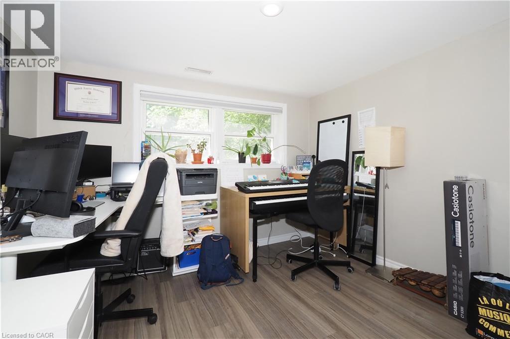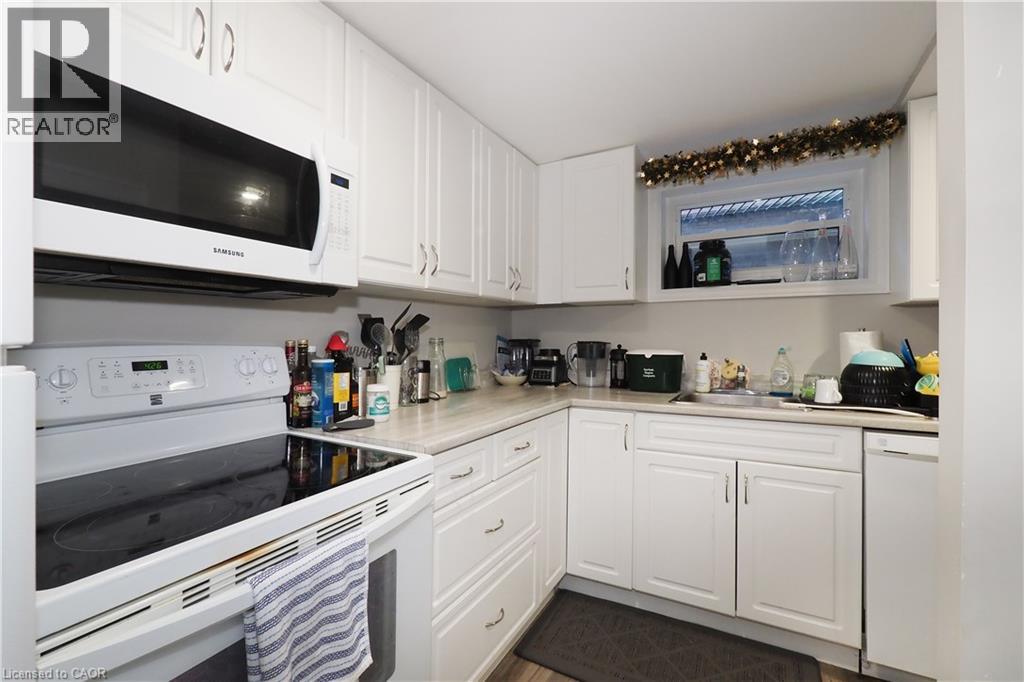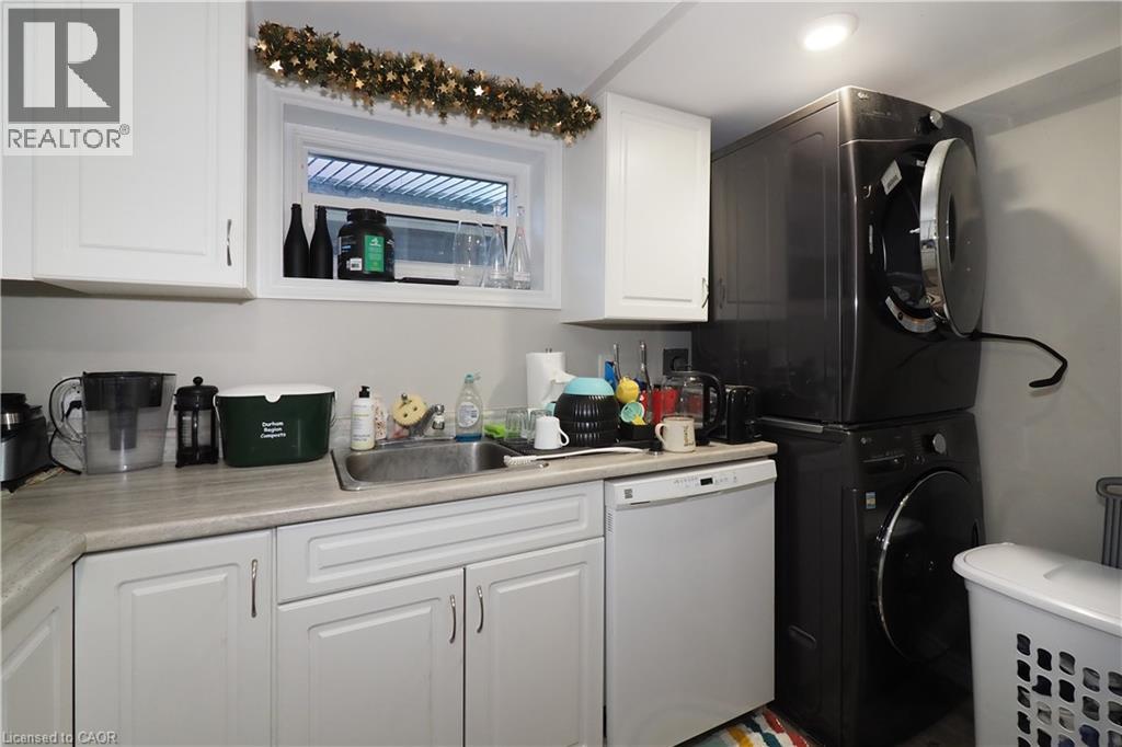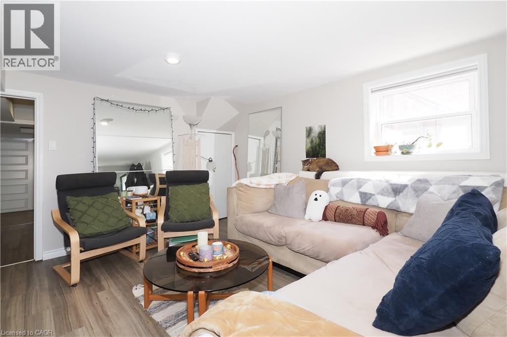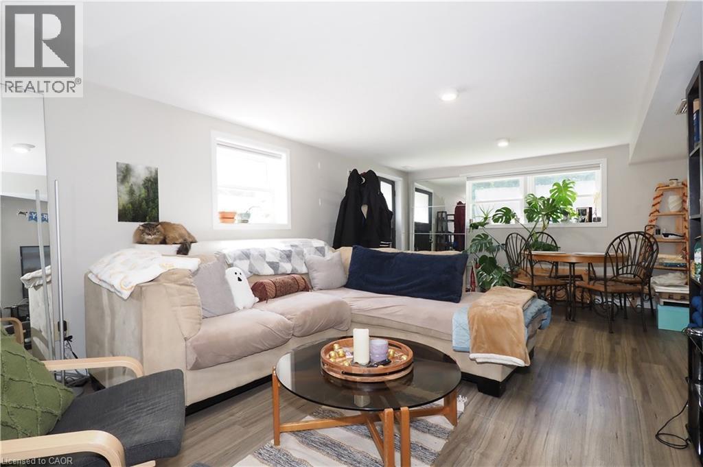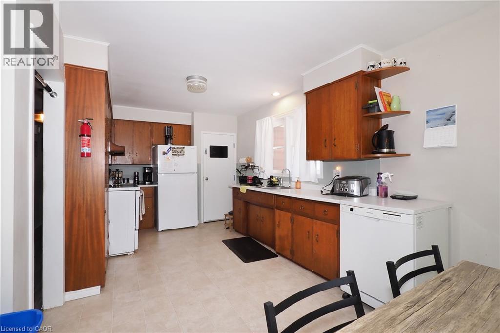 Live Upstairs, Rent Out the Lower Level – Licensed Dwelling with Walkout Basement in Prime Waterloo Location Upper level vacant – turnkey investment opportunity or ideal mortgage helper! This outstanding LICENSED 2-unit brick bungalow with loft and walkout basement is just steps to Uptown Waterloo, WLU, University of Waterloo, Conestoga College, shopping, and the LRT. Perfect for investors, multi-generational families, or parents seeking student housing. The main level offers a bright, functional layout with two bedrooms plus a loft bedroom, an eat-in kitchen with updated counters and faucet (2022), living room, and a 3-piece bath. Hardwood floors in the bedrooms, fresh paint, vinyl plank flooring in the living room and hallway, and a charming enclosed front porch add warmth and character. The fully finished walkout lower level, renovated in 2017, features large windows, a private entrance, a spacious family room with direct access to a covered patio, two bedrooms, a 4-piece bathroom, and a stylish second kitchen. The lower unit also includes a large utility room, laundry with full-size stackable washer/dryer (2020), cold cellar, and plenty of storage. Upgrades & Features: 50-year steel roof, furnace (2022)main floor fridge (2024),Vinyl plank flooring (2019), basement windows (2018/2019), water softener (2019)Eavestroughs & garage door (2020)Custom window blinds in basement (2022) The deep, fully fenced backyard includes a 9’ x 12’ shed—perfect for extra storage or creative future use. With a valid Waterloo rental license, this home is move-in or rent-out ready, offering excellent income potential in one of the region’s most sought-after locations.This one checks all the boxes—don’t miss your chance to own a versatile, income-generating property in Uptown Waterloo. The extra income covers a $335,000 mortgage Great opportunity for home ownership . (id:46441)