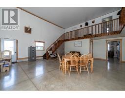 Country Living Meets Modern Comfort. Welcome to this one-of-a-kind Barndominium (40 x 80 structure) built in 2022, offering 2,671 sq. ft. of stylish living space that combines a large shop/garage, enclosed storage, and a horse barn/extra garage space all just minutes from town! Inside, you'll love the bright open-concept layout, where the kitchen with island and spacious pantry flows into the dining and living areas. Rustic charm and polished concrete floors bring beautiful modern elegance. The spacious foyer features a handy closet and laundry area. Living space features a main-floor bedroom plus a 4pc bath for convenience. Upstairs, find 3 more bedrooms and a rec room with large loft overlooking the living room with wood floors. The shop/garage easily fits 6 cars, with enclosed 24'10" x 18'4" storage room on the second floor. In-floor oil boiler heating for year-round comfort. The home is fully insulated with spray-foam, making it economical to heat with efficient in-floor heating. Outside, enjoy a country garden, garden shed, and plenty of parking with a large drive parking area. The horse barn offers endless possibilities for hobby farming or equestrian use. This property blends modern design, rural charm, and exceptional functionality, perfect for those who want space to live, work, and play! (id:46441)