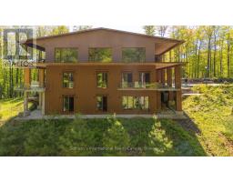 Pure Luxury Retreat - Your Private Paradise in the Heart of the Canadian Wilderness. A one-of-a-kind luxury retreat and architectural marvel that truly feels like a house from 2050. Built to Net Zero Passive House standards, this estate spans approximately 9,500 sqft of custom-designed living space, plus over 9,000 sqft of decks encircling the home. It blends modern luxury with ecological stewardship and serene forest views. Featuring a private dock and deeded lake access, this property is a sanctuary for those seeking refined living and the possibility of complete independence.Crafted with European-sourced materials and exceptional craftsmanship, this home showcases a rare EcoCocon straw wall system for superior insulation, Legalett radiant floor heating for consistent, draft-free warmth, and triple-pane European windows to optimize energy performance. Every detail is thoughtfully designed for comfort, wellness, and sustainability.The main floor offers an expansive open-concept great room with floor-to-ceiling windows, a gourmet kitchen, library, office, and a spacious primary suite with a spa-like ensuite. Upstairs, discover a versatile gym, cozy upper living area, wood-burning sauna, and an inviting swim-up spa with jacuzzi - an unparalleled wellness retreat. The lower level features a generous recreation room, rock-carved wine cellar, cold storage, and mechanical spaces.Natural materials throughout - including wide-plank natural wood floors, marble and granite finishes, and cross-laminated timber - create a serene, healthy environment. With a full-house Generac battery system, 400-foot well, and solar-ready infrastructure, this home is fully prepared for sustainable, self-sufficient living. There are simply too many upgrades to list - contact the listing agent for full details on this unique masterpiece, offered well below replacement cost. (id:46441)