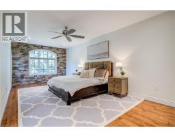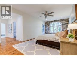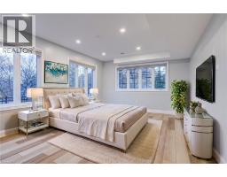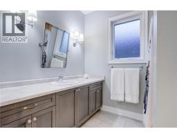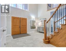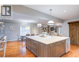 Luxury living in Ancaster’s prestigious Oakhill with a stunning backyard oasis! Situated on a quiet court steps to top-rated schools, parks, all shopping amenities in town and conservation trails. This spectacular custom home offers almost 5600 sqft with 6 above grade bedrooms, 9 ft ceilings on all levels and superior construction. Exquisite curb appeal and a grand foyer are immediately impressive. The main level features a private office (or bedroom), formal dining overlooking the pool, powder room and a laundry/mudroom with custom built-ins from the oversized double garage. The open concept gourmet eat-in kitchen and family room is a perfect entertaining space offering a large island, quartz counters, high-end stainless appliances with RO ice & water and a gas fireplace. The upper level has 5 spacious bedrooms, a 5-piece bath, and a stunning primary with a reclaimed wall, walk-in dressing closet and spa-like 5-piece ensuite. The finished walkout basement features an above grade bedroom and full bath with in-law potential, recreation spaces for a theatre or home gym, and plenty of storage. Large windows allow a ton of natural light, there is an insulated concrete floor for warmth and safe & sound insulation for sound proofing/fire safety. Outside, there is a covered patio for lounging and landscaped gardens surround a heated ozonator pool with waterfall, coloured lights and jump rocks. Upgrades: Generac generator, lighting & fixtures from Restoration Hardware. (id:46441)