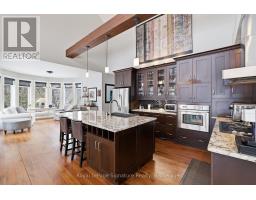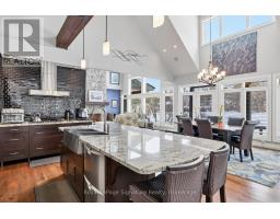 Welcome to 176 High Bluff Lane in the sought-after Trailwoods community of Thornbury, a beautifully crafted custom home offering exceptional main-floor living just moments from the water, trails and vibrant downtown. Designed with comfort and elegance in mind, the main level showcases vaulted ceilings, a stunning stone fireplace and an abundance of natural light. The spacious kitchen is the heart of the home, featuring a large island, walk-in pantry and seamless flow to the dining and living areas, perfect for entertaining. A dedicated main floor office, convenient laundry/mudroom and a serene primary suite with walk-in closet and luxurious 5-piece ensuite complete this level. Upstairs, two generous bedrooms each offer their own private ensuites ideal for family or guests. The finished lower level provides additional living space with in-floor heating, perfect for recreation, media and fitness. Built as the Trailwoods model home, this property has been meticulously maintained and thoughtfully upgraded. Highlights include a 7KW Generac generator, 200 AMP service with whole-home surge protection, dual sump pumps with generator backup, a 5-ton Carrier A/C (2020), Rinnai Combi Boiler (2020), Life Breath HRV, water softener, Honeywell True Steam humidifier, and 24/7 monitored alarm system.The insulated garage features LED lighting, heater and existing gas line. Exterior features include stamped concrete porches, Hardy Board siding, refreshed wood beams (2025), a 100 sq. ft. garden shed, extended landscaping with full irrigation, and a recently sealed driveway. An exceptional offering in West Thornbury (id:46441)