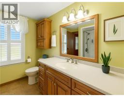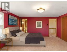 Welcome to a rare opportunity! Lovingly maintained by the same owners since 1975, this spacious four-bedroom home sits on a picturesque ravine lot along one of the area’s most sought-after streets. From the moment you arrive, you’ll notice the pride of ownership with a large covered front porch, concrete driveway for three vehicles, and a matching walkway that set the tone for what’s inside. Step into the inviting front foyer that opens up to multiple living spaces. To the left, a bright living and dining room combination features a cozy gas fireplace, large windows with California shutters, and a warm, welcoming atmosphere. To the right, a versatile main floor den makes an ideal home office or study. Down the hall, the oversized eat-in kitchen boasts updated cabinetry with plenty of storage, a double sink, built-in dishwasher, and room for family gatherings. A stylish 2-piece bathroom with quartz counters completes the main level. Upstairs, you’ll find four generously sized bedrooms, all with California shutters for added style and light control. The primary bedroom includes dual closets and convenient ensuite privileges to the family bathroom, perfect for both comfort and function. The walk-out basement provides incredible potential for an in-law suite, with two separate entrances for privacy. Here you’ll discover a spacious rec room with gas fireplace, a 3-piece bathroom, large laundry area, storage room, and even a huge fruit cellar. Step outside and enjoy your own private retreat. The backyard deck overlooks the serene ravine, offering peace, privacy, and beautiful views year-round. This is more than a home. It is a chance to own a property that has been cherished for decades and is ready for its next chapter. (id:46441)
