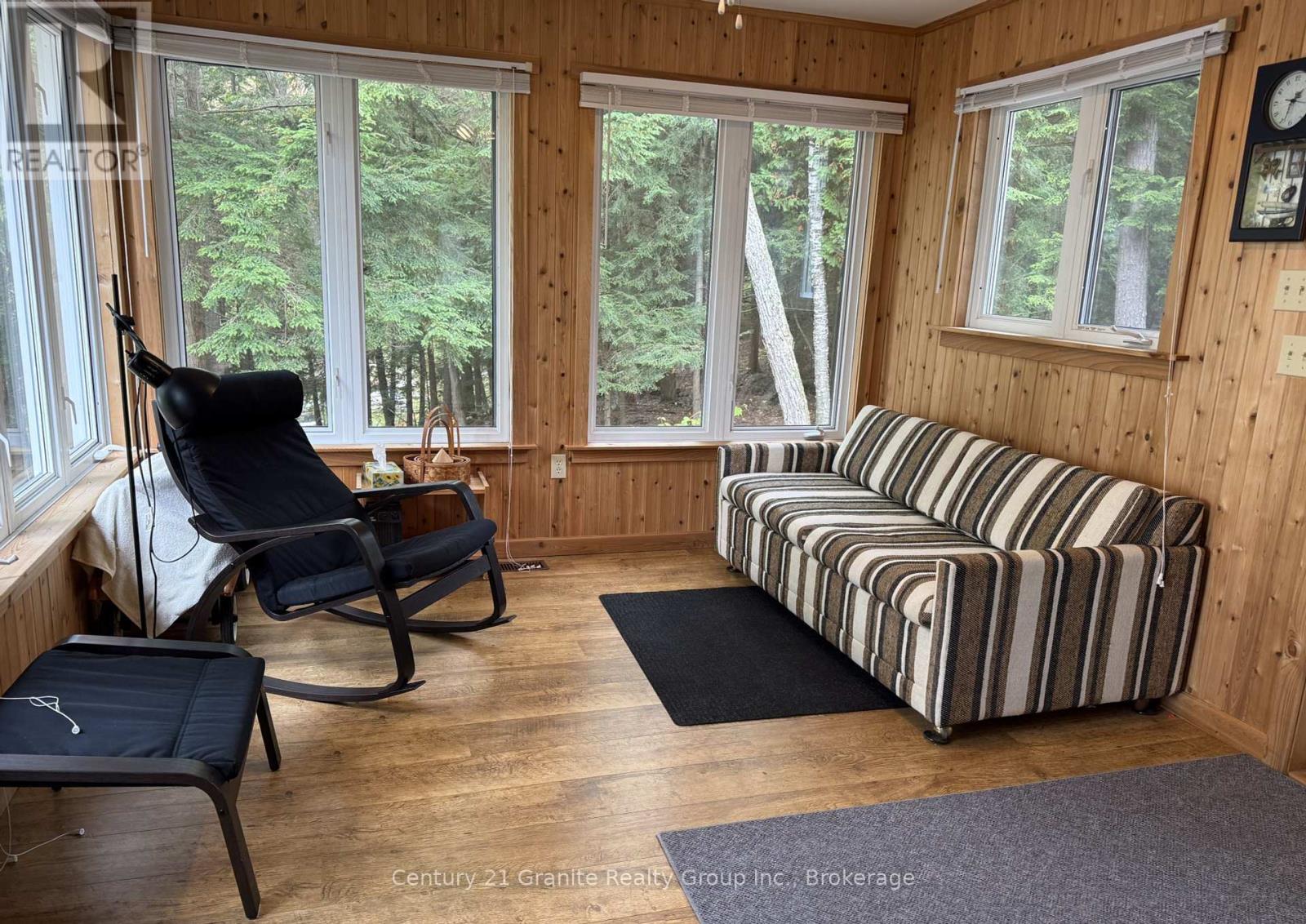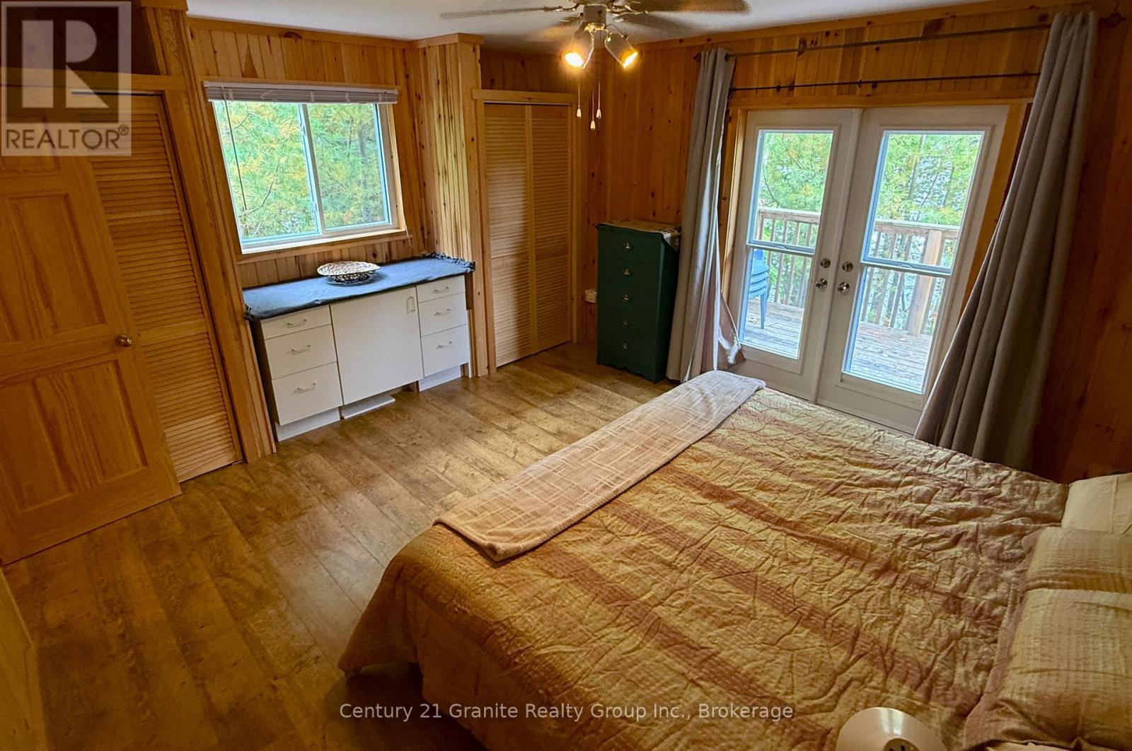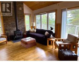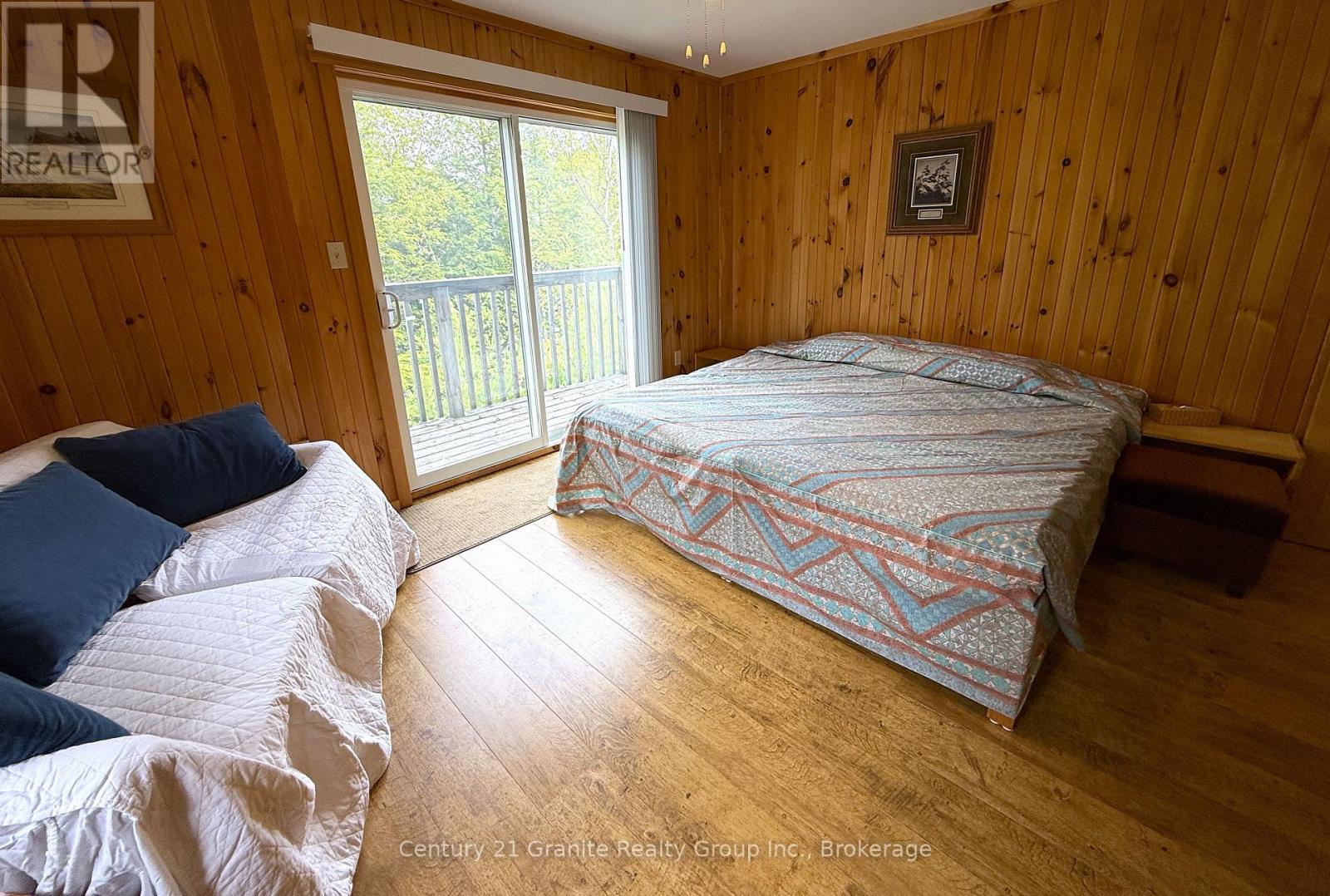 A one-of-a-kind opportunity on prestigious Redstone Lake. This 2.5-acre point property offers 550 ft of pristine southern exposure with water on three sides, combining sheltered bay living with sweeping big-lake views. Surrounded by the Canadian Shield, private trails, and mature pines, this is one of the most unique and private parcels on the lake. The meticulously maintained 3-bedroom, 2-bathroom home features cathedral pine ceilings over the family and dining rooms. The open-concept main floor is filled with natural light from south-facing windows and offers a walkout to the lakeside deck. A Muskoka room extends the living space, while the large kitchen includes a pantry, plenty of storage, and a wood-top bar with seating. The main floor hosts a spacious primary bedroom with his-and-hers closets and a large bathroom with oversized storage. Upstairs, find a loft-style bedroom, private office, and a large additional bedroom with its own balcony overlooking the lake. Updates include new windows (2016), a new electric furnace (2024), and extensive insulation for year-round comfort. The home has been lovingly cared for and is offered turnkey ready to enjoy immediately. Ideally located just 30 minutes from the village of Haliburton for shopping, dining, schools, and healthcare, and close to Haliburton Forest & Wildlife Reserve for outdoor adventure. Under 3 hours from the GTA, this property is the perfect escape while remaining accessible. Redstone Lake is known for its deep, clean waters, excellent boating, fishing, and swimming, with a vibrant community of year-round and seasonal residents. Rarely does a property of this size, privacy, and setting become available! (id:46441)
