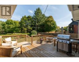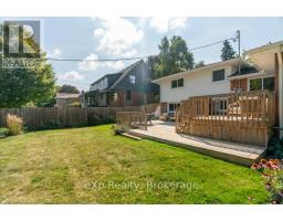 Welcome to this stunning 4-level side split, meticulously maintained by its loving owners and tucked away in one of Guelphs most coveted neighbourhoods. Rarely do homes in this area come to market. Surrounded by mature trees and perennial gardens, this property offers a serene retreat while being in the heart of the city on a quiet street with no sidewalks or streetlights. Inside, you'll find a beautifully renovated kitchen (2015) with custom cabinetry, Cambria quartz countertops, and stunning quartzite floor that opens to an inviting living and dining space that flow seamlessly for everyday living and entertaining. The home features 3 bedrooms and 4 bathrooms, along with a versatile living room off the back that can easily serve as a guest bedroom or creative space. The basement was thoughtfully renovated in 2020, creating a dedicated yoga and wellness retreat with heated floors, a custom live-edge ash shelf, a sauna, and a full 3-piece bath perfect for fitness and relaxation enthusiasts. From the lower level, step outside to a two-tier deck (2018) overlooking the private backyard that backs directly onto a park, offering a true extension of your living space. A paved stone driveway adds to the curb appeal and functionality. All appliances and a gas-run barbecue are included, making this an exceptional move-in-ready opportunity. This is a rare chance to own a distinctive home that blends nature, lifestyle, and modern comfort. (id:46441)