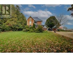 Lovely Hobby Farm on almost 3 acres set back on Grey Road 9. Currently set up for horses, there is a large 90 X 140 ft outdoor riding arena that has been drain tiled and is roomy for horse training, practice exercises or just plain fun! Drive shed (approx 30 X 40 ft) and other outbuildings support chickens and other hobby interests. Large Barn/Shop (approx 34 X 70 ft) holds a large single bay garage/shop with concrete floor, wiring for a welder, water, workshop and storage space. At the back are 4 oversized horse box stalls, newer construction. Back fences paddock literally holds your horses and there is room for additional corral space at the front of the house. Home is a grand 1880's 2.5 storey brick farmhouse with back deck, drilled well, metal roof/eves all done in 2021. Propane forced-air heats the home, with a cozy propane fireplace warming up the wrap-around enclosed Sunroom. Plenty of fruit trees are about as well as perennials. Electricity is extended to the chicken coups for ease. Storage C-cans stay, great for hay and grain. Privately located and surrounded by farms, this could be the spot for you! (id:46441)