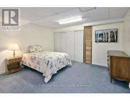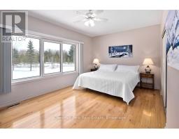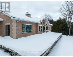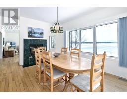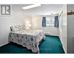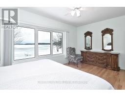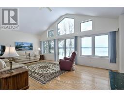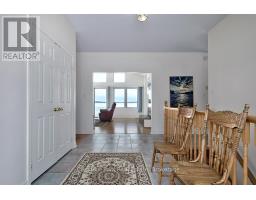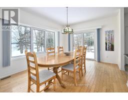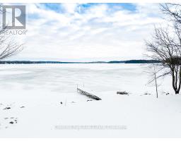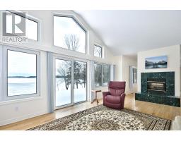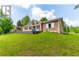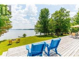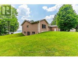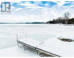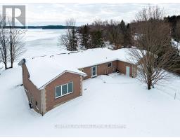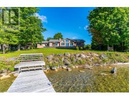 Welcome to easy waterfront living on Lake Eugenia, offering 130 feet of south-facing shoreline with a private dock. This family-friendly property features a gently sloping, sandy beach area, perfect for swimming, playing, and enjoying fun filled summer days by the water. With 4 bedrooms and 3 bathrooms this brick bungalow offers over 2,000 sq ft on the main level, plus a bright, finished walk-out basement that adds wonderful flexibility. Large windows fill the home with natural light, while the living room's vaulted ceilings and two-sided fireplace create a warm and inviting space. Sliding doors lead to a full-length deck where you can relax and take in the lake views. The dining room is generously sized for hosting family and friends, and the well-appointed kitchen features new appliances, plenty of cabinetry, and ample counter space. The lake-facing primary bedroom includes a walk-in closet and private ensuite, while two additional bedrooms are tucked into their own wing with a shared bathroom. The finished walk out basement extends the living space with a second kitchen, games area, third bathroom and fourth bedroom. A bonus room gives options for a hobby room or office. A double car garage with interior access from both the kitchen and basement adds everyday convenience. A welcoming Lake Eugenia home that combines beautiful frontage, sunny southern exposure, and space for family, friends, and fun. (id:46441)