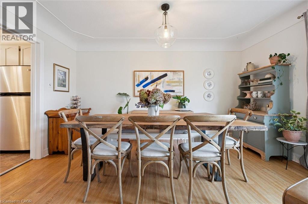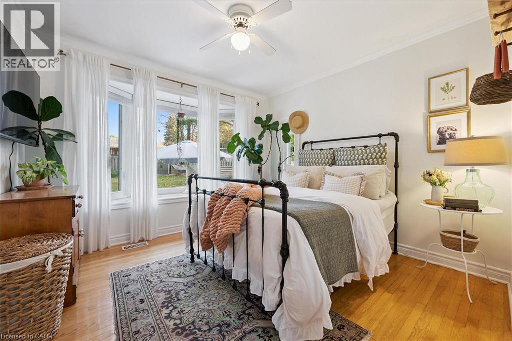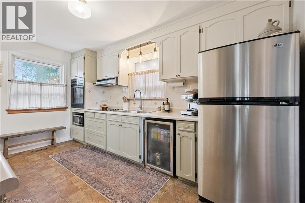 Welcome to 19 Cadillac Drive, a charming brick bungalow nestled on an impressive 60 x 140 ft lot in one of Guelph’s most beloved neighbourhoods, St. George’s Park! This warm and inviting 3-bedroom home blends timeless character with thoughtful updates and is surrounded by mature trees, beautiful gardens and serene privacy. Step inside to a bright, open-concept living and dining room, where rich hardwood floors, a massive bay window and natural sunlight create a perfect space to gather with family. The spacious kitchen offers ample counter space, two large windows and a built-in beverage fridge. All 3 generously sized bedrooms feature hardwood floors and oversized windows, sharing a beautifully renovated main bathroom complete with a modern vanity and a stunning glass walk-in shower with detailed tile work. Downstairs, a second 3-piece bathroom adds convenience and the framed basement awaits your finishing touches. The fully fenced backyard is a dream: enjoy summer barbecues on the massive patio, relax in the private hot tub or let the kids and pets run freely in the expansive grass area. Two sheds for your storage needs. Notable updates include: furnace (3 years), updated bathroom, newer roof & water softener (under 5 years), new tiled entry, central vac, and mostly updated windows (except kitchen). This unbeatable location is just around the corner from École King George and steps to St. George’s Park with tennis courts, a playground and open green space. You're a short walk to downtown Guelph, where you'll find GO Transit, boutique shopping, fantastic dining and much more! Move-in ready with room to grow - 19 Cadillac Drive is the perfect place to plant roots! (id:46441)