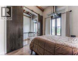 RIVER VIEW & DOUBLE CAR GARAGE! Urban Loft Living Meets Nature in Historic Hespeler Village! Welcome to #107-19 Guelph Ave. This stunning 2-storey Riverbend loft is located in the heart of Hespeler Village, where contemporary design meets serene riverside views. Overlooking the tranquil Speed River, this rare offering features soaring 22-foot ceilings, beautifully engineered hardwood flooring, and a sleek, modern aesthetic that sets it apart from the ordinary. Boasting 2 spacious bedrooms and 2 full bathrooms, this bright light-filled home offers a functional layout perfect for both relaxing and entertaining. Enjoy the outdoors from multiple Juliette balconies, providing fresh air and picture-perfect views of the surrounding nature. The kitchen and living areas are flooded with natural light, enhancing the lofty ambiance and riverfront charm. Additional features include a double car garage, private storage locker, and access to premium building amenities such as a fitness room, dog wash station, bike storage and a private locker for storage. Whether you're an outdoor enthusiast, commuter, or someone looking to enjoy the boutique shops, cafes, and trails of Hespeler Village, this stunning loft has it all. Don’t miss your chance to live in one of the area's most coveted loft communities. Modern comfort, natural beauty, and small-town charm – all in one. (id:46441)