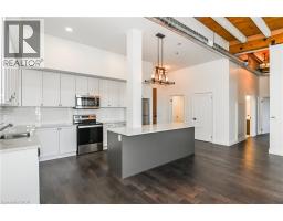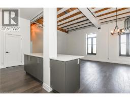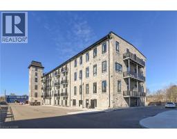Rarely offered opportunity to lease a unit on the top floor in this luxury historic converted building in the heart of Hespeler Village. This nearly 1,300sqft 2 bed, 2 bath suite showcases original post and beam construction, soaring 15' ceilings, and plenty of windows with Juliette balconies which frame unobstructed views of the Speed River. Thoughtfully designed with a spacious, functional open concept layout and hardwood floors throughout. The modern kitchen featuring stainless steel appliances, quartz countertops and an oversized island with breakfast bar completes the center of this home. Accessibility-friendly with wider doorways, hallways and bathroom. The building was carefully crafted to appreciate the historic craftsmanship while infusing modern day finishes and amenities. This suite includes a very rare 2 car enclosed private garage. Enjoy the charm of this historic community- you're just steps away from downtown Hespeler and it's restaurants, boutique shops, cafes, library, long scenic trails and parks. Convenient access to HWY 401 and nearby amenities makes commuting effortless while still offering an elevated lifestyle yet peaceful setting to come home to. (id:46441)