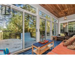 Discover a rare and extraordinary opportunity to own more than 20 acres of pristine Muskoka forest with over 1,600 feet of private waterfront along the shores of 6 Mile Lake. This exceptional property combines the rustic charm of cottage living with the space, comfort, and quality expected in a luxury retreat. Spanning over 3,600 sq. ft., this expansive 8-bedroom, home offers endless possibilities - whether you envision a family compound, corporate getaway, or serene private retreat. As you arrive, a grand covered porch and wide front hall welcome you inside. The wood staircase sets the tone for the home's warm and timeless character. Two distinct wings are seamlessly connected by a spacious dining room with a walkout to a three-season sunroom - perfect for relaxing on a rainy day. The main floor features two wood-burning fireplaces framed in hand-picked stone, three inviting living areas, and a bright, open kitchen with floor-to-ceiling windows offering sweeping lake views. Stone countertops, ample cabinetry, and generous workspace make it both functional and elegant. Step outside onto the massive wrap-around deck, ideal for entertaining, dining, or enjoying a quiet morning coffee. Unwind in the hot tub overlooking the forest and lake, or relax on the private balconies, shared by the two primary bedrooms. Follow the wooded path down to your expansive private dock, where you'll be surrounded by untouched shoreline - a rare find in Muskoka. Additional features include a detached garage and workshop with carport, perfect for storing watercraft, ATVs, and equipment. A metal roof ensures durability and peace of mind for years to come. This property offers complete privacy, yet remains just minutes from Highway 400 and under two hours from Toronto. Whether as a family retreat, investment opportunity, or exclusive private getaway, this remarkable 6 Mile Lake property embodies the best of Muskoka living - where luxury meets nature. (id:46441)