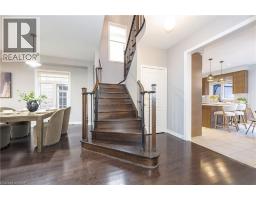 Stunning 4-bedroom, 4-bathroom 2,575 sq. ft. home in highly sought-after East Waterdown. Designed with modern living in mind, this residence boasts a bright open-concept layout filled with natural light, soaring 9-foot ceilings, and elegant oak hardwood floors and tiles throughout, a completely carpet-free home. Main foyer opens into the huge living/dining area. Spacious mud-room with custom built-in closet and access to garage, me large eat in kichen reatures uparaded cadineury ana premium stainiess steel apprances peried lor dou everyady medis ani entertaining. Upstairs, you'll find spacious 4 bedrooms and three bathrooms and three baths including two with their own ensuites, including a luxurious 5-piece retreat and a stylish 4-piece washroom. The large backyard offers plenty of space for family gatherings, gardening, or simply relaxing outdoors. Ideally located close to top-rated schools, scenic hiking trails, and beautiful parks, this home blends comfort, style, and convenience in one exceptional package. The following updates were completed in 2019: Backyard Deck, Front Yard, Kitchen, Bathrooms, Hardwood on Second Floor, Second Floor Built-In Closets, Built-In Shelves on First floor and in-Basement Lighting. (id:46441)
