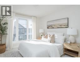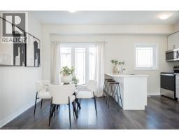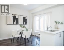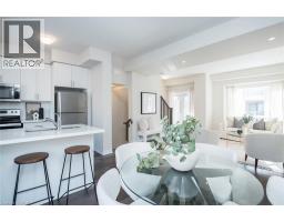 This newer built freehold townhome is thoughtfully finished throughout, offering a clean, modern layout designed for easy day-to-day living. Wide plank, wood-inspired flooring, pot lights, and large windows create a bright, cohesive main level anchored by a sleek kitchen with quartz countertops, stainless steel appliances, tiled backsplash, and a double undermount sink with breakfast bar seating. The upper level is well laid out with two bedrooms, including a primary suite complete with a walk-in closet and a three-piece ensuite featuring quartz finishes and a large window. A second bedroom with a double-door closet and convenient upper-level laundry add to the home’s practical appeal, making the space equally suited to professionals or a young family. Outdoors you'll find a rear yard and parking conveniences that include an attached garage, and a driveway parking space, along with visitor parking for guests. Ideally located close to Saltfleet District High School, nearby parks, and everyday amenities enjoy all this move-in ready home has to offer. (id:46441)