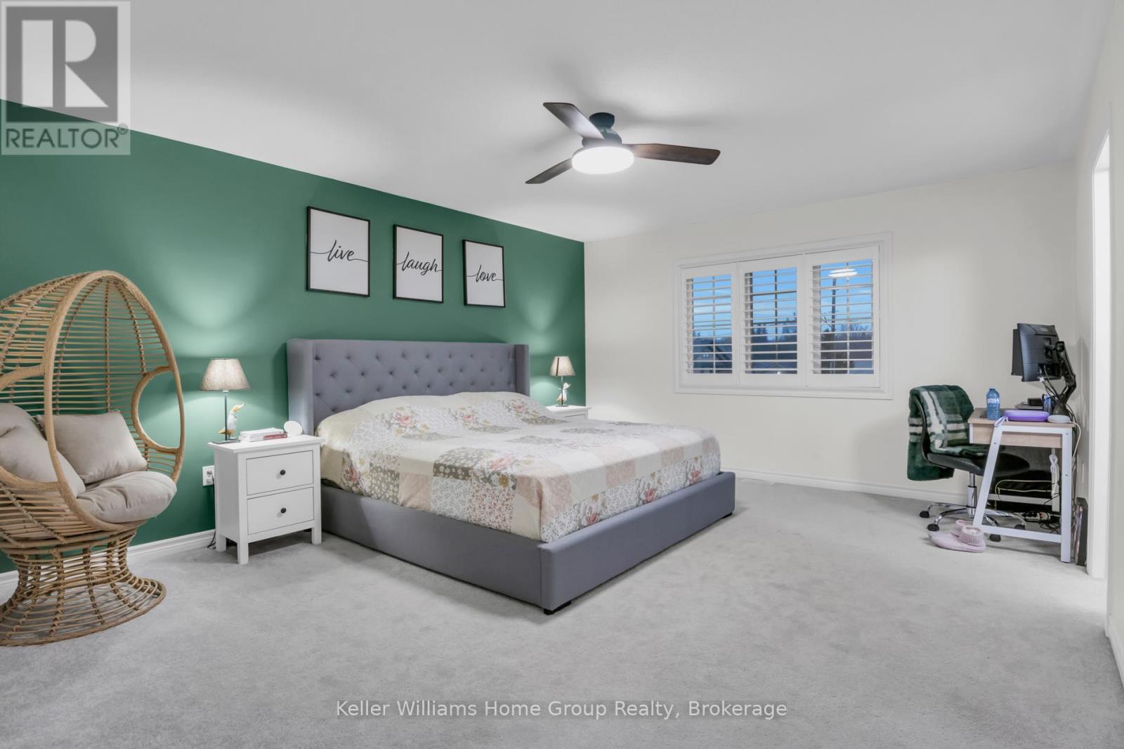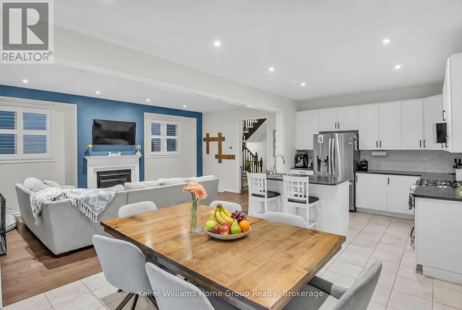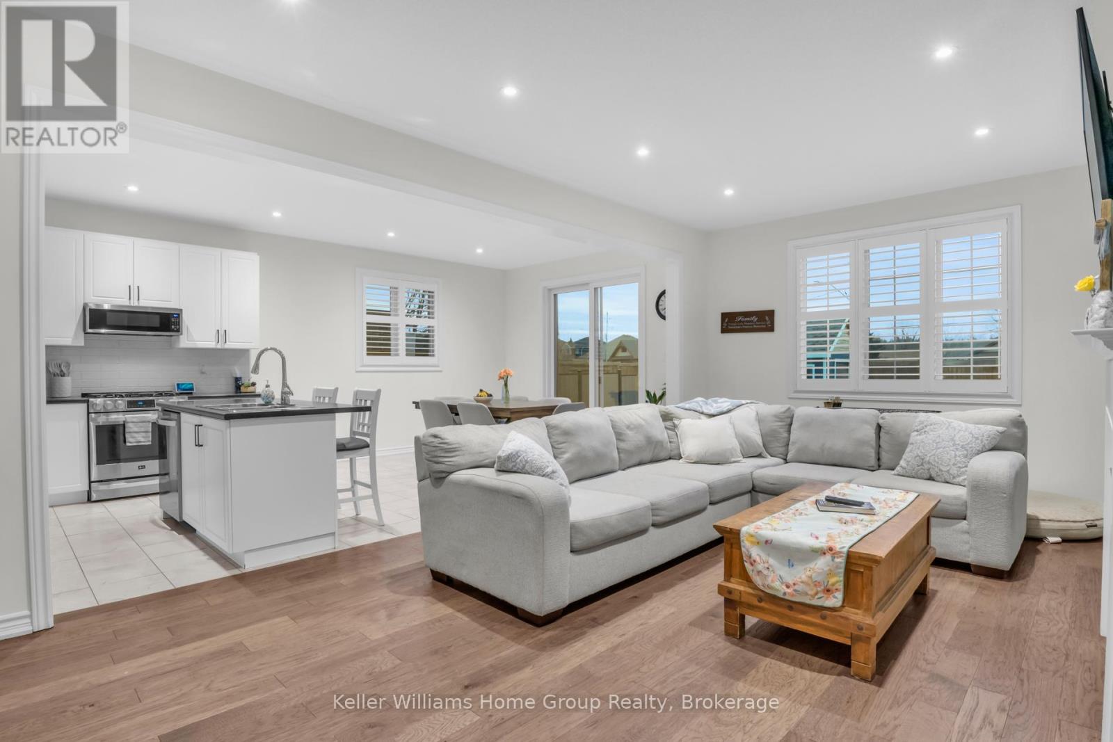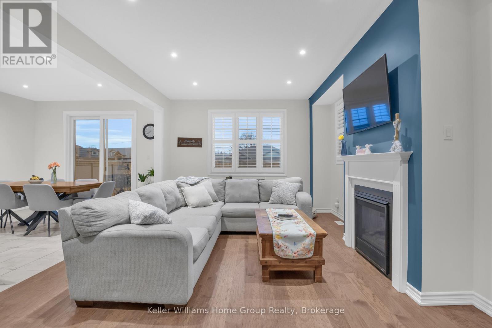 Welcome home to this bright and spacious newer family home in the sought-after Storybrook community! Situated on a premium quiet cul-de-sac and set on a pie-shaped lot, this property offers a peaceful setting and plenty of space to enjoy. Step inside to an open-concept main floor that is inviting and functional, perfect for entertaining or everyday living. The livingroom features large windows, hard wood floors and a cozy gas fireplace as its focal point, creating a warm and welcoming atmosphere. Upstairs, the primary bedroom retreat offers generous space, a spa-like ensuite with a separate soaker tub, and a walk-in closet. Two additional well-sized bedrooms, a 4-piece bathroom, and convenient second-floor laundry complete the upper level. The fully finished basement adds valuable living space with a recreation room, den with closet, and a 3-piece bathroom, ideal for guests, a home office, or additional family space. Outside, enjoy a fully fenced backyard featuring inground sprinklers, a concrete patio, and a concrete walkway leading to a shed with hydro and lighting, perfect for storage or a workshop setup. The heated double garage provides space for two vehicles and includes a separate door leading to the backyard. With no sidewalk, you'll benefit from extra parking and enhanced curb appeal. Ideally located close to Groves Memorial Community Hospital, parks, trails, the Cataract Trail, and the Grand River, this home also offers easy access to Guelph and Kitchener-Waterloo, and is just minutes from the charming village of Elora. Don't miss your opportunity to own this quality-built Sobara home in one of Fergus's most up-and-coming communities! (id:46441)
