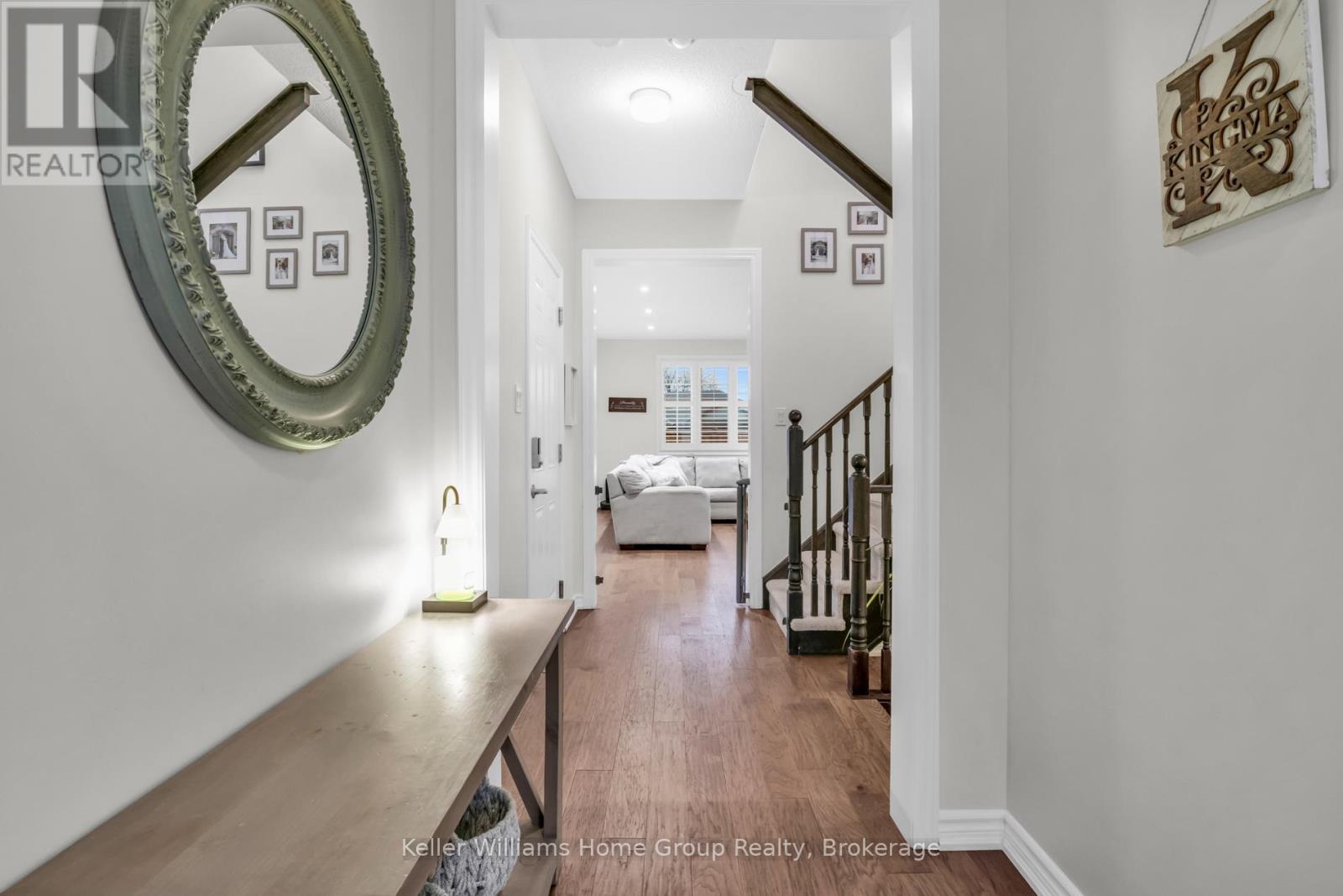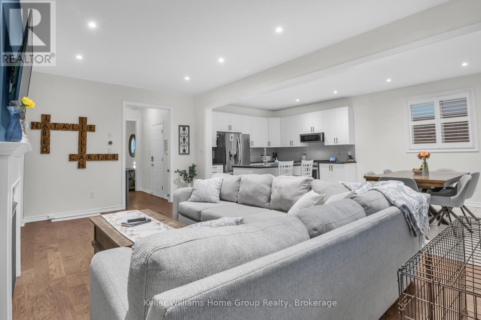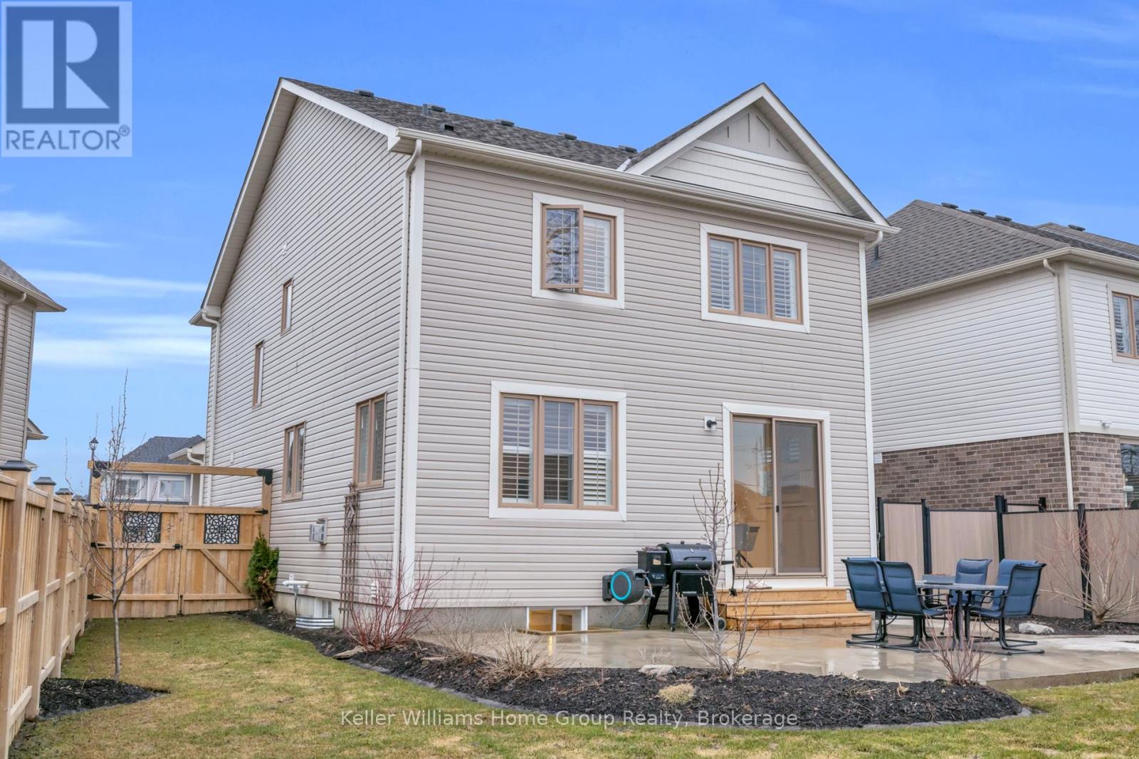 Welcome home to this bright and spacious newer family home in the sought-after Storybrook community! Situated on a premium quiet cul-de-sac and set on a pie-shaped lot, this property offers a peaceful setting and plenty of space to enjoy. Step inside to an open-concept main floor that is inviting and functional, perfect for entertaining or everyday living. The livingroom features large windows, hard wood floors and a cozy gas fireplace as its focal point, creating a warm and welcoming atmosphere. Upstairs, the primary bedroom retreat offers generous space, a spa-like ensuite with a separate soaker tub, and a walk-in closet. Two additional well-sized bedrooms, a 4-piece bathroom, and convenient second-floor laundry complete the upper level. The fully finished basement adds valuable living space with a recreation room, den with closet, and a 3-piece bathroom, ideal for guests, a home office, or additional family space. Outside, enjoy a fully fenced backyard featuring inground sprinklers, a concrete patio, and a concrete walkway leading to a shed with hydro and lighting, perfect for storage or a workshop setup. The heated double garage provides space for two vehicles and includes a separate door leading to the backyard. With no sidewalk, you'll benefit from extra parking and enhanced curb appeal. Ideally located close to Groves Memorial Community Hospital, parks, trails, the Cataract Trail, and the Grand River, this home also offers easy access to Guelph and Kitchener-Waterloo, and is just minutes from the charming village of Elora. Don't miss your opportunity to own this quality-built Sobara home in one of Fergus's most up-and-coming communities! (id:46441)