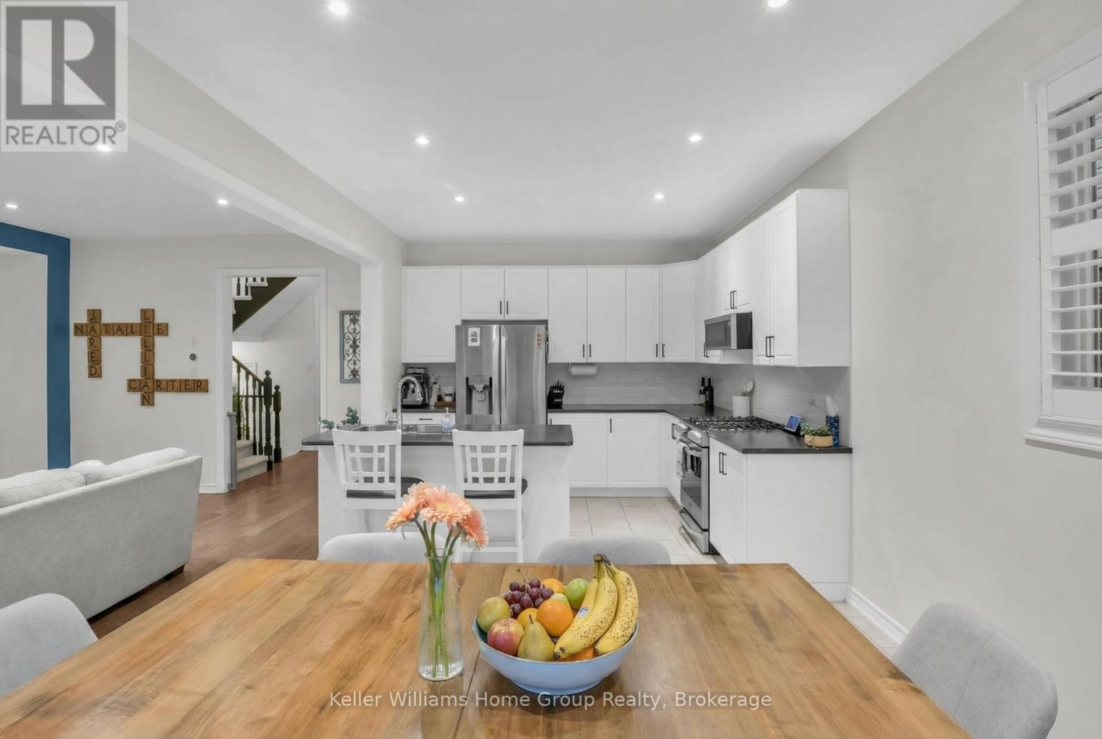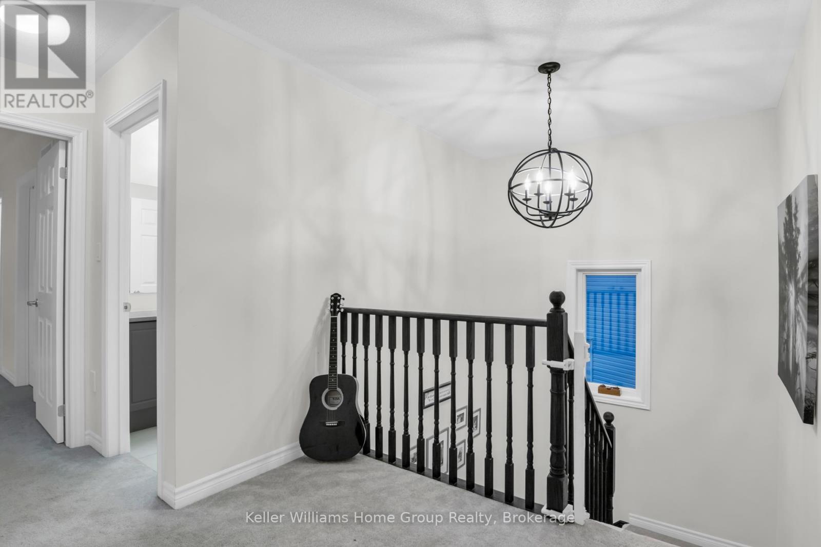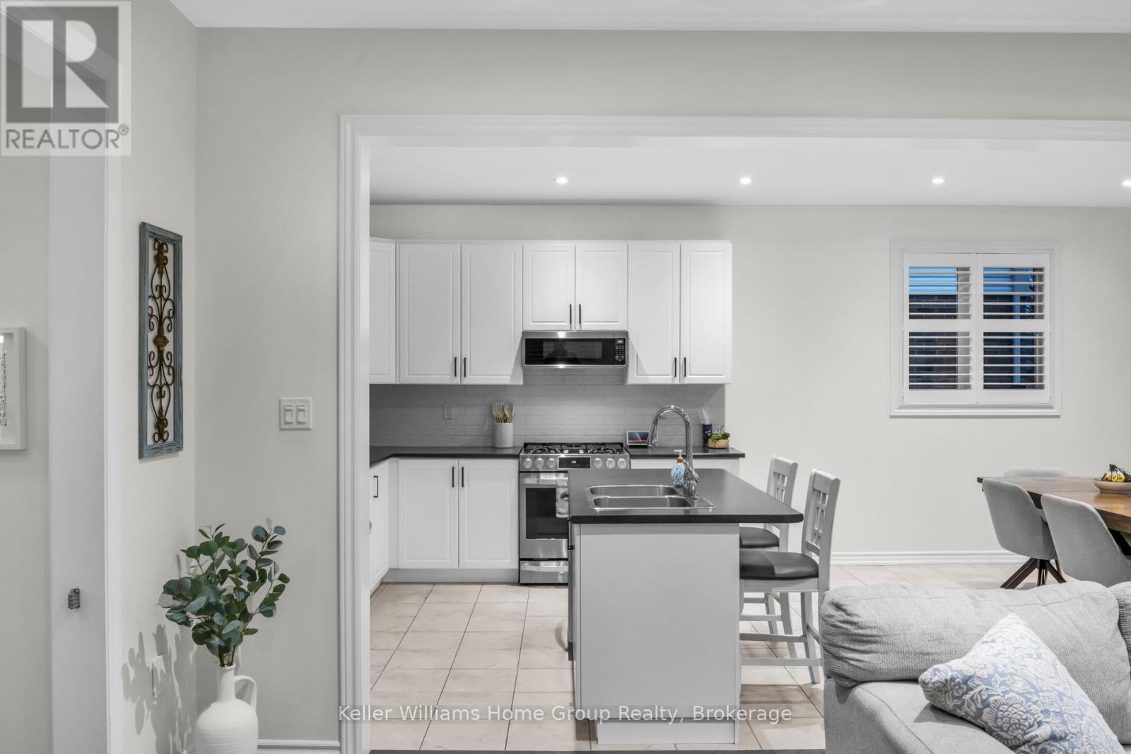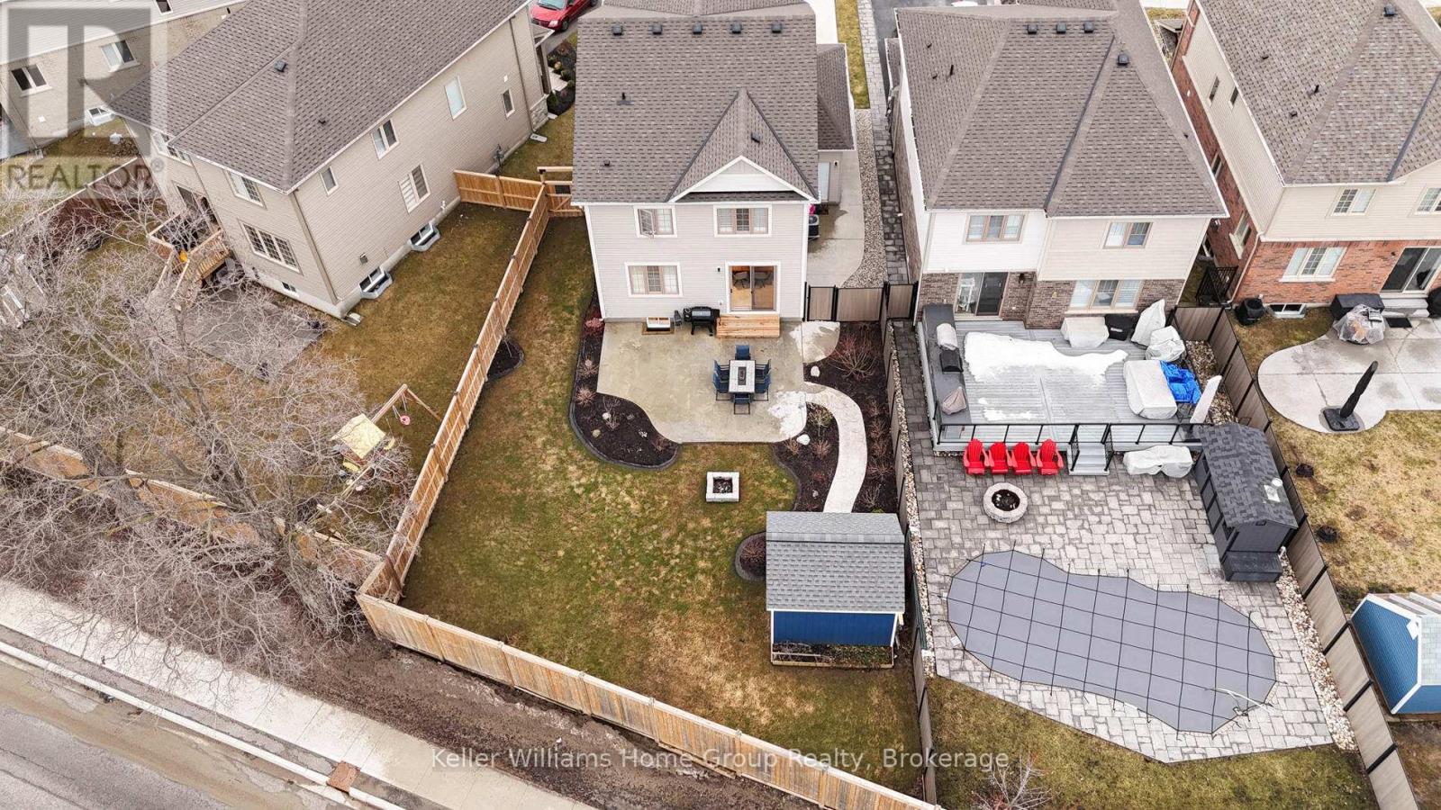 Welcome home to this bright and spacious newer family home in the sought-after Storybrook community! Situated on a premium quiet cul-de-sac and set on a pie-shaped lot, this property offers a peaceful setting and plenty of space to enjoy. Step inside to an open-concept main floor that is inviting and functional, perfect for entertaining or everyday living. The livingroom features large windows, hard wood floors and a cozy gas fireplace as its focal point, creating a warm and welcoming atmosphere. Upstairs, the primary bedroom retreat offers generous space, a spa-like ensuite with a separate soaker tub, and a walk-in closet. Two additional well-sized bedrooms, a 4-piece bathroom, and convenient second-floor laundry complete the upper level. The fully finished basement adds valuable living space with a recreation room, den with closet, and a 3-piece bathroom, ideal for guests, a home office, or additional family space. Outside, enjoy a fully fenced backyard featuring inground sprinklers, a concrete patio, and a concrete walkway leading to a shed with hydro and lighting, perfect for storage or a workshop setup. The heated double garage provides space for two vehicles and includes a separate door leading to the backyard. With no sidewalk, you'll benefit from extra parking and enhanced curb appeal. Ideally located close to Groves Memorial Community Hospital, parks, trails, the Cataract Trail, and the Grand River, this home also offers easy access to Guelph and Kitchener-Waterloo, and is just minutes from the charming village of Elora. Don't miss your opportunity to own this quality-built Sobara home in one of Fergus's most up-and-coming communities! (id:46441)
