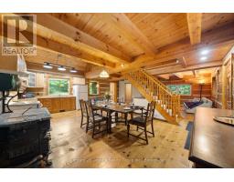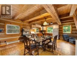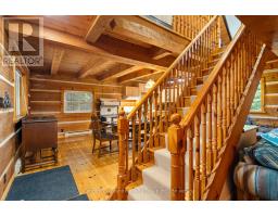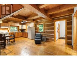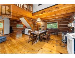 You know that picture on Facebook that asks if you'd prefer the cabin in the woods or the modern condo? This is THAT cabin in the woods with all the charm, yet just built in 1990. This handcrafted log cabin feels like something out of a storybook; only better, because you get to call it home. Built from solid 12"square-cut logs, it radiates warmth and strength, like it was made to stand the test of time. The covered front porch welcomes you with charm, while dormer windows peek out from above, giving the cabin a timeless character that blends perfectly into its forest setting. With over 8 acres of private woods at your doorstep, you'll have endless room to roam, breathe in the fresh pine air, and enjoy nature at its most peaceful. Just under 3 km away is the charming hamlet of Tory Hill, home to world-renowned glassblowing artisans whose creations are as brilliant as the landscapes around them. You'll also find the historic IB and O rail line, now transformed into a year-round trail for hiking, biking, snowmobiling, and adventure in every season. Whether you dream of a weekend retreat or a cozy year-round residence, this fully winterized log home has you covered: warm and inviting when the snow falls, naturally cool and breezy when summer arrives. And when you're ready to venture out, a collection of nearby beaches and boat launches means you can spend your days paddling, fishing, or swimming under the Haliburton sun. Equal parts rustic escape and practical home, this property is more than just a cabin in the woods, its a lifestyle, waiting for you. (id:46441)