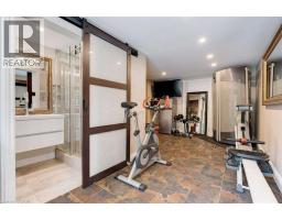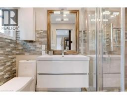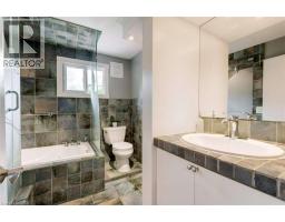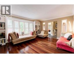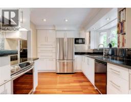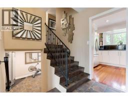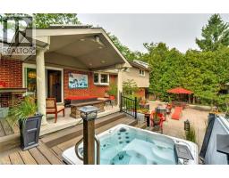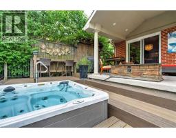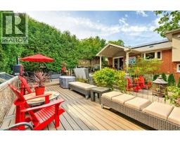 For more info on this property, please click the Brochure button.This detached home is located in South Burlington, in the prestigious community of Roseland. Steps to the waterfront, and minutes from downtown with several sought after schools nearby, as well as multiple parks, community centres, and trails. The home features a spacious family room with a cozy fireplace, and built-in bookshelves on Jatoba (Brazilian Cherry) hardwood floors. The ground floor walkout room is set up as a gym on porcelain tiles, but can be used as a living room or games room. Adjacent to this room there is a 3-piece washroom with heated floor and heated towel rack. Three bedrooms, a 4-piece washroom, and a washer/dryer closet complete the upstairs living space. The spa-like bathroom showcases a shower with body jets and a jacuzzi tub. The fully-finished basement hosts an in-law suite with a separate entrance. This studio apartment includes a kitchen with a standard sized fridge and stove and a 3-piece washroom with washer and dryer. The backyard features a hot tub, outdoor shower and multilevel deck and patio. The custom made shed provides ample storage. This private outdoor oasis is hardscaped throughout, with the right balance of greenery and privacy which can be enjoyed year round. A programmable irrigation system for easy maintenance keeps the individual gardens blooming. The extended driveway provides ample parking for up to 6 cars. Solar panels provide additional income. (id:46441)