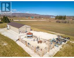 Discover the charm of country living with this 4 Bedroom, 3.5 bath, 3.5 storey renovated farmhouse with 3000 square feet of stylish open concept living space. Nestled on 2.68 acres this property offers a blend of modern comforts and rustic appeal. Walk-out from the living room to a large deck and patio area and soak in views of the Bay and refreshing pool. The gorgeous Batteaux Creek custom kitchen (2021) features a huge island with a quartz countertop, ideal for family gatherings or entertaining! Experience the ultimate retreat in the massive primary bedroom, complete with a 6 piece ensuite bath (2016) and walk-in closet. Step out onto the private balcony and take in the breathtaking views of Georgian Bay! The finished bonus room in the attic is perfect for a kid's playroom, music or art studio. The freshly painted family room on the lower level features a cozy wood stove and includes a walk-out to the expansive rear yard. Full bath and sauna complete the lower living space. The 7 foot high unfinished basement area is ideal for storage. Enjoy a morning coffee on the charming wrap around veranda. Steel roof on house and garage, windows and exterior doors all replaced in 2018. The 26 x 26 detached, double car garage has an attached 14 x 23 propane-heated workshop area. The quality built 2018, 40 x 112 outbuilding consists of a 32 x 40 shop with a 16 foot ceiling and is roughed-in for in-floor heating. 14 x 16 foot insulated overhead and slider doors. Impressive 40 x 80 cold storage area complete with a storage mezzanine. Primary underground service, 50kva transformer, 200 amp service to the shop area and central metering. From hobbies to business ventures, the uses for this building are endless! The original barn foundation is transformed into an outdoor party area complete with a silo converted bar! This is a very unique and special property located just minutes to Collingwood, Blue Mountain, private ski clubs and golf courses with a stunning million dollar view! (id:46441)