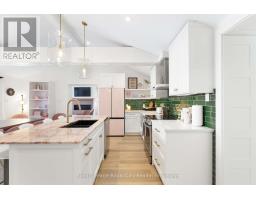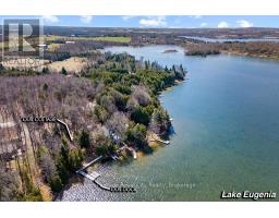 Start your day with uninterrupted sunrise views dancing across Lake Eugenia. Welcome to 194 Wiles Lane - a design-forward waterfront retreat offering 100 feet of private shoreline, a floating dock, gently sloped shorelines, and panoramic lake views from nearly every principal space.The two-tier deck, framed in glass, creates a seamless transition between indoors and out - complete with a built-in hot tub overlooking the water. This is lake living curated for both quiet mornings and sophisticated summer entertaining.Inside, vaulted ceilings and expansive windows flood the home with natural light. The statement fireplace, finished in custom blush tile, and the vaulted ceilings anchor the living room with warmth and architectural presence. The open-concept kitchen pairs elevated finishes with function: a stunning stone island with seating for four, rich emerald tile backsplash, brushed gold hardware, and plenty of cabinetry - flowing effortlessly into the dining space where sliding doors extend gatherings onto the deck against a lakefront backdrop.A secondary lounge and bar area offers a refined setting for evenings in, while three beautifully appointed bedrooms - each with individual A/C - provide comfort for guests. The shared bath is thoughtfully finished, while the primary suite is a private sanctuary featuring a spectacular ensuite with a freestanding tub, glass shower, dual vanity, and a lofted dressing retreat, also ideal as a reading lounge or private workspace.Turnkey and impeccably styled, this property offers exceptional lifestyle flexibility - whether enjoyed personally or positioned as a high-end short-term rental. Located just 25 minutes from Collingwood and 10 minutes to Beaver Valley Ski Club. 194 Wiles Lane is an elevated expression of lakefront living. (id:46441)