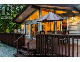 GREAT OPPORTUNITY TO OWN WATERFRONT WITH 2 COTTAGES! Or Make the Main Cottage your Year-Round Home and have the Smaller Cottage for your Guests or for Extra Income. The Main Home features a Spacious Open Concept Living Area great for Visiting Friends or a Big Family Gathering Featuring Cathedral Ceilings, a Full Wall of Windows w/Walkout to Deck, and Firepit Area, and a Beautiful Gas Fireplace with Reclaimed Wood Mantle. Two of the Three Bedrooms have Sliding Glass Door Walkouts to the Deck and Take Full Advantage of the Water View and Amazing Sunsets. A Full Bath & Den Completes the Rooms on the Upper Level. A Large Rec Room in the Lower Level Offers Additional Space for the Kids to Hang Out as Well as a Laundry Closet & 2 Pc Bath for Convenience. The Lower Original Cottage has had Many Upgrades in the past year including: New Windows, Vinyl Plank Flooring, and a New Entrance Door. It Features 2 Bedrooms, a 2pc Bathroom and Open Concept Kitchen/Living Area with a Front Deck to Enjoy the Fantastic View. The Main Cottage has a Whole Home Water Filtration System (2017) which also Feeds Water to the Lower Cottage as well as the Hydro and in Case of Power Outage, the Generator Operates the Entire Property, the Lower Cottage included. This Property has a Gentle Slope to the Water and a Great Stone Staircase from the Upper to the Lower Cottage and Beach. In 2017, Upgrades included: a New Furnace & A/C, the Water Filtration System, Gas Lines, the Fireplace, the Rear Deck, Vinyl Flooring, Pine Doors, New Windows & Sliding Glass Doors. In 2020, Kitchen & Bath Countertops were Replaced w/ Quartz and the Shed was added. You cant beat this Location, Close to Amenities like the Woodland Beach Market, LCBO & Convenience Store and just a Short Drive to Ski Resorts. This could be the Opportunity you have been waiting for in a very Friendly Neighborhood! (id:46441)