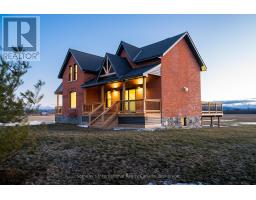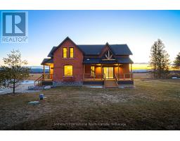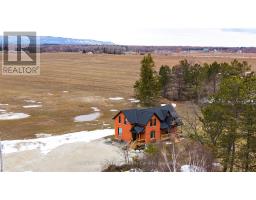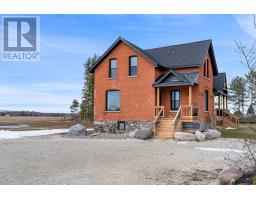 Solid brick farmhouse circa 1900, fully renovated inside and out, offering over 2,100 sq ft of finished living space on a private 2-acre parcel in Clearview Township. Blending timeless character with modern design, this property is surrounded by mature trees and open countryside, capturing stunning 180-degree views of the Niagara Escarpment, with sunsets and the evening lights of Blue Mountain Resort in the distance. The thoughtfully redesigned interior features an open-concept main level with soaring cathedral ceilings, a propane linear fireplace, and expansive windows that flood the space with natural light. The kitchen is equipped with a large centre island, quartz countertops, and stainless steel appliances, ideal for everyday living and entertaining. A striking mono staircase with glass railing adds architectural appeal, while multiple walkouts lead to three new decks, creating seamless indoor-outdoor living. A 3-piece bathroom completes the main floor. Upstairs offers two spacious bedrooms and a Jack and Jill 4-piece bathroom with double sinks, a soaker tub and standalone shower. The fully finished lower level provides a bright family room, additional bedroom, and office, bringing the total to 2+1 bedrooms. Extensive upgrades (2023-2025) include new windows, doors, roof, insulation, well, septic, and mechanical systems. In-floor heating in bathrooms, water treatment system, air exchanger, and on-demand hot water ensure year-round comfort. Ideally located minutes to Blue Mountain, Collingwood, Wasaga Beach, and Creemore for skiing, beaches, trails, dining, and shopping. (id:46441)