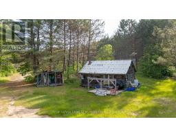 Welcome to your very own private getaway in the beautiful Almaguin Highlands. This amazing 200 acre parcel comes complete with two bedroom cabin equipped with a propane stovetop and off grid wash facility as well as multiple out buildings including a 28 foot travel trailer for overflow guests. A gated entrance located at the year round road ensures your privacy when you're at the property taking in everything nature has to offer or away from the property at that pesky career. Also included with the property is a tractor with blower and grader attachments to ensure the long driveway into your private oasis remains in great shape and you are able to use the property for the maximum amount of time throughout the year. Doe Lake access is a short drive away and perfect for hooking up the boat and spending the day on this lake or any other of the multiple lakes in the area. There a multiple trails throughout the property to ensure fun times for everyone whether you're ATVing, dirt biking or snowmobiling. Mature pine trees on the property are beautiful and solar panels give a small amount of power for necessities during your stay. This camp is truly a getaway for someone looking for some alone time. (id:46441)