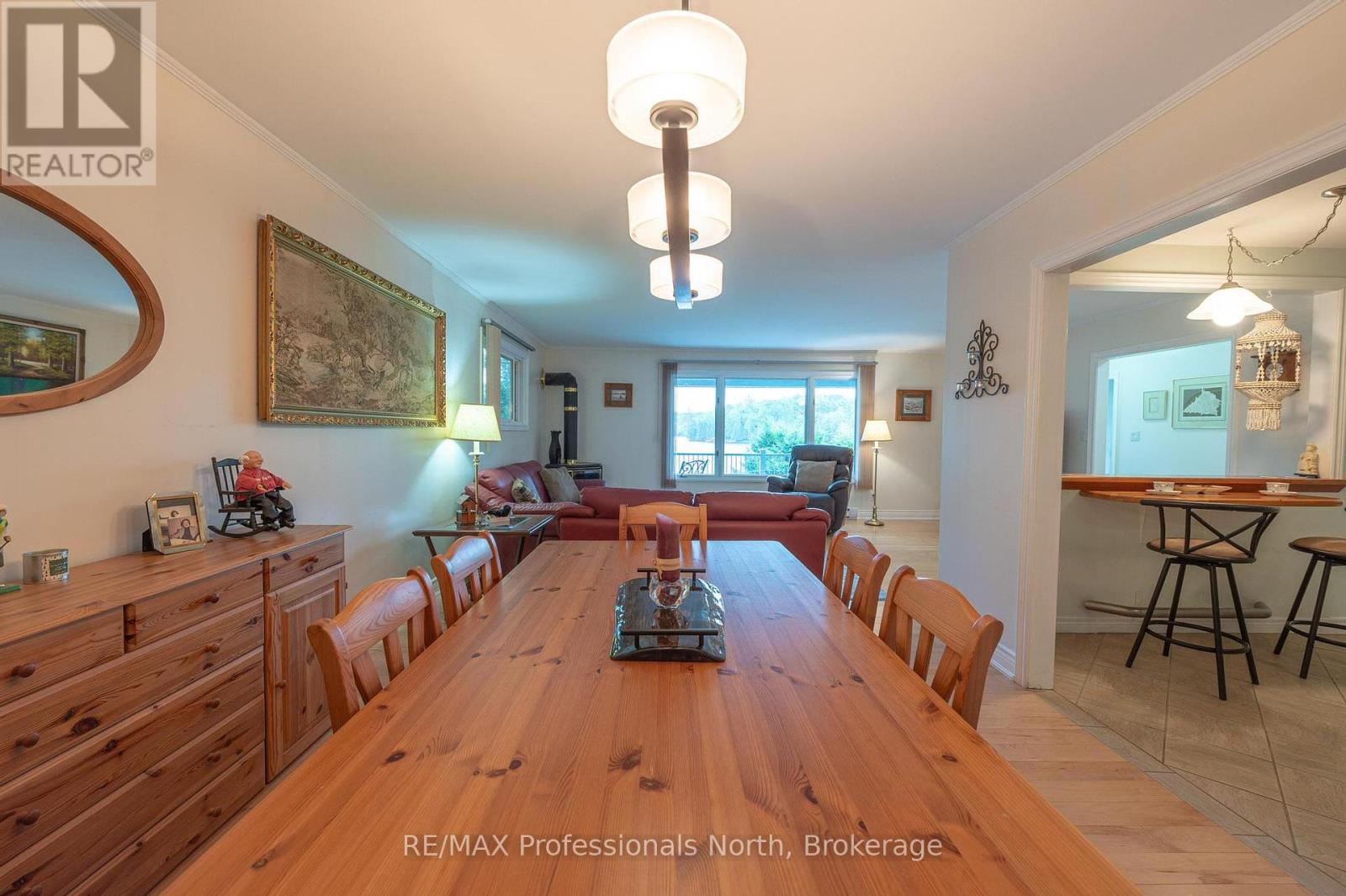 Welcome to 1981 Horseshoe Lake Road!  This lovely year round Cottage or Home offers Three Bedrooms plus a Den, Spacious Kitchen with a view of Horseshoe Lake, Living Room with a view of the lake, Second Family Room, Two Bathrooms, Oversized Double Garage with a Work Bench inside.  Outside enjoy the Granite Landscaping, Covered Porch with a Lake view, back Carport for protected entertaining or storage space, Level side yard to play on and Sloping side yard to toboggan on!  Bush behind for a total 5.82 Acres of Land.  380' of Frontage with a Dock in the Lake.  Shoreline is not owned.  Walk to the White Water Preserve and Rapids, Boat the two lake chain and only 7 km to Minden!  Bus Route for year round road maintenance. (id:46441)