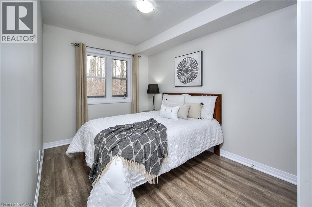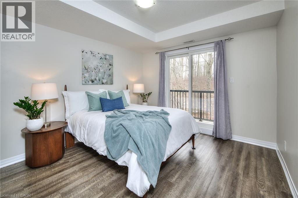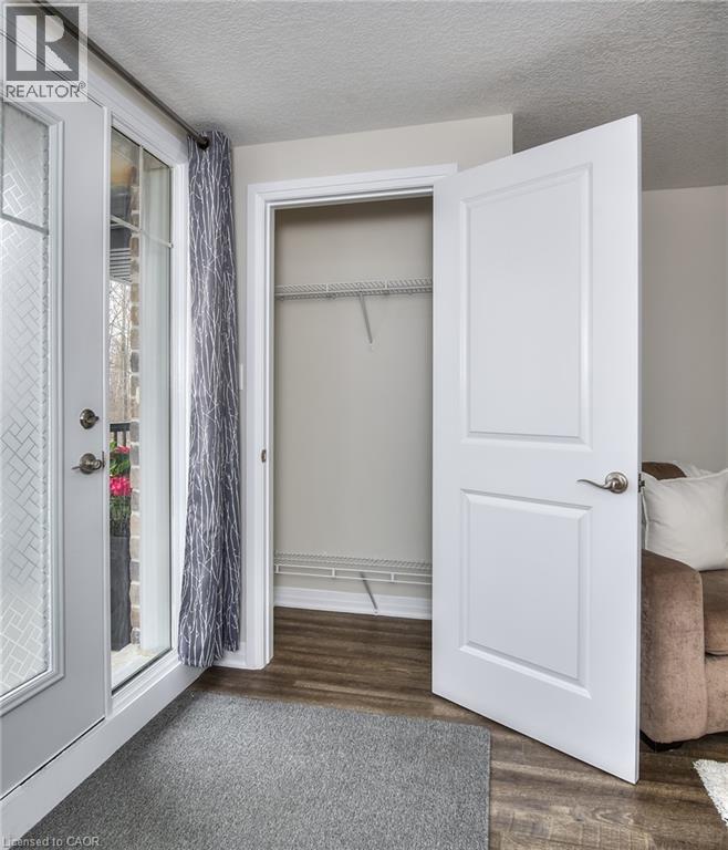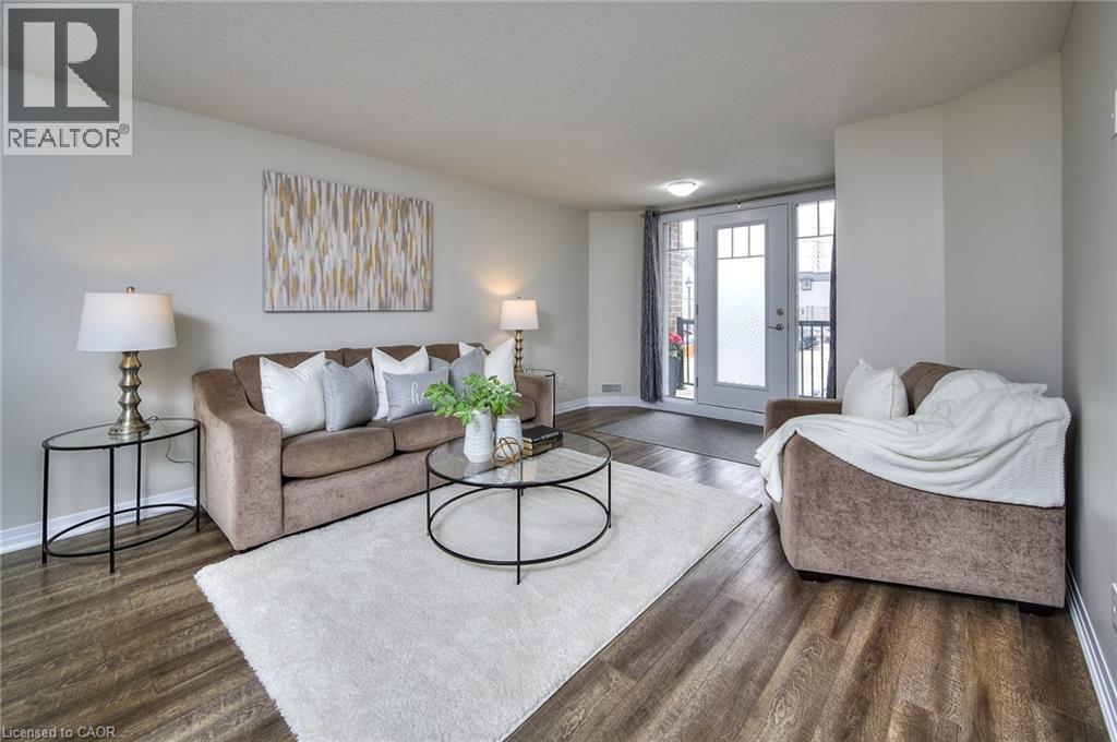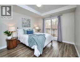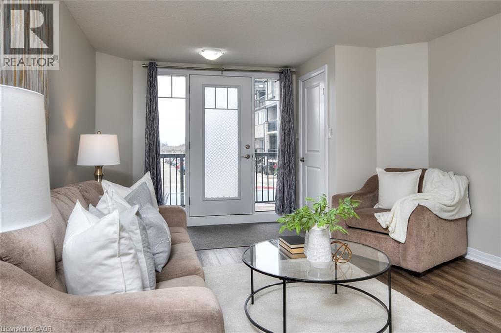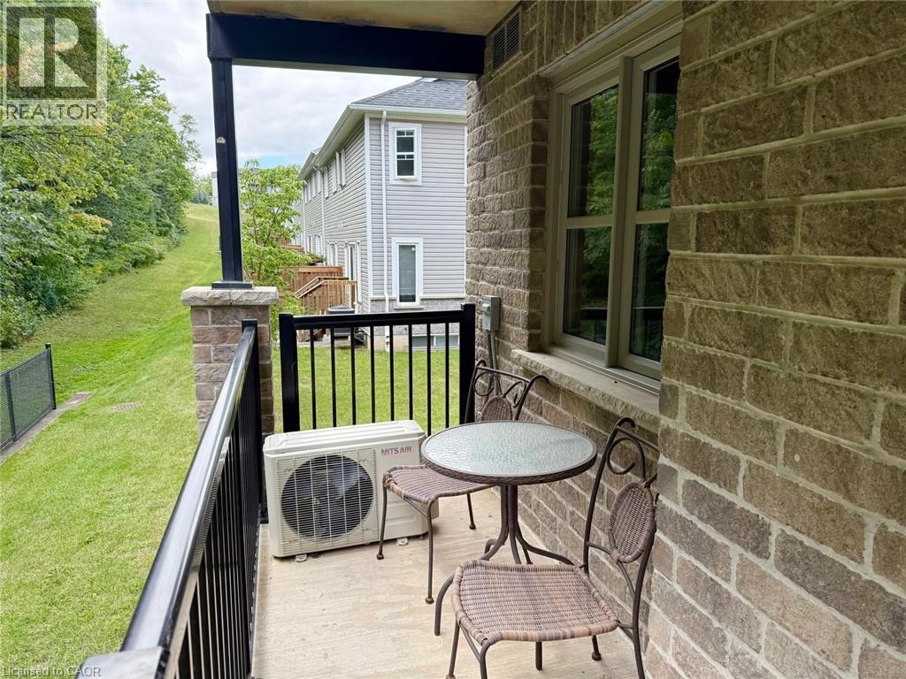 $280.65 MonthlyThis beautiful MAIN FLOOR stacked townhome shows like a model and features over 865 square feet of bright, open-concept living space – all on a single level! Two good sized bedrooms, ample closet space, one full bathroom and in-suite full sized laundry compliment the stylish principal living spaces on display here. Completely carpet-free with upgraded luxury vinyl plank flooring and freshly painted throughout. The upgraded kitchen features a large built-in pantry alongside the refrigerator, as well as stylish granite countertops. This unit’s premium location is settled at the edge of the development, and its spacious private patio overlooks absolutely beautiful mature woodland – all while being only five minutes from the many amenities of the Sunrise Shopping Centre, excellent schools and the expressway at Homer Watson Boulevard. One dedicated parking spot is included! Main floor units do not come for sale often and this one is move in ready! (id:46441)