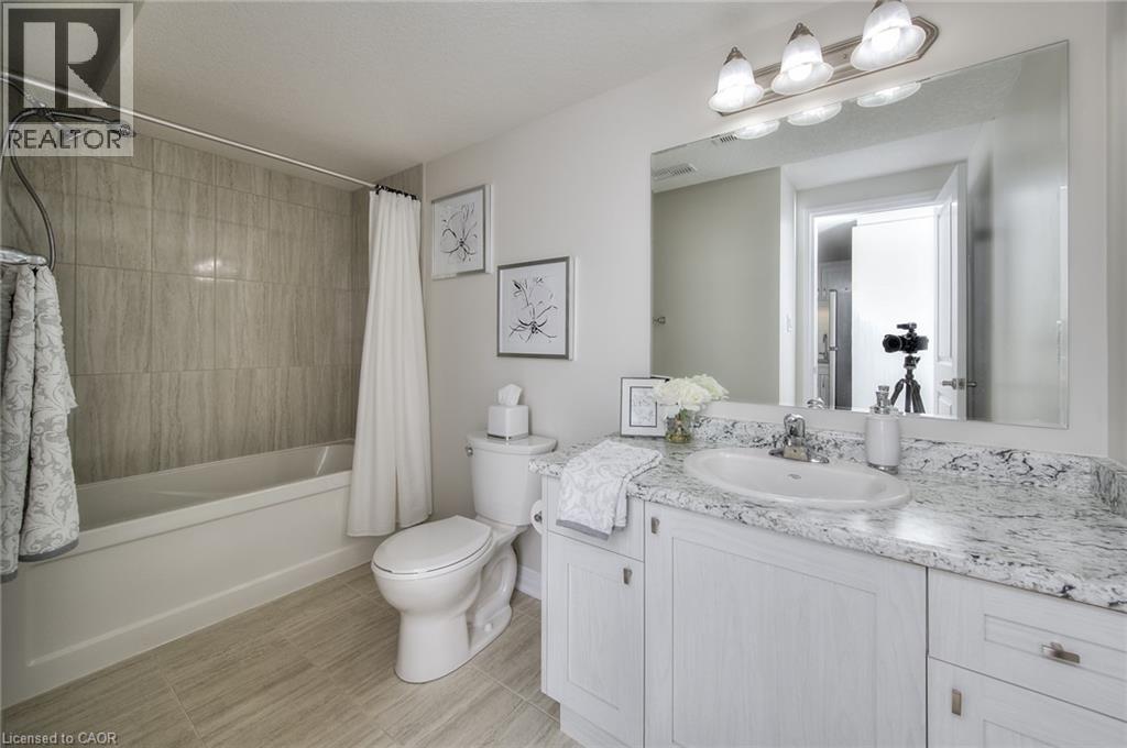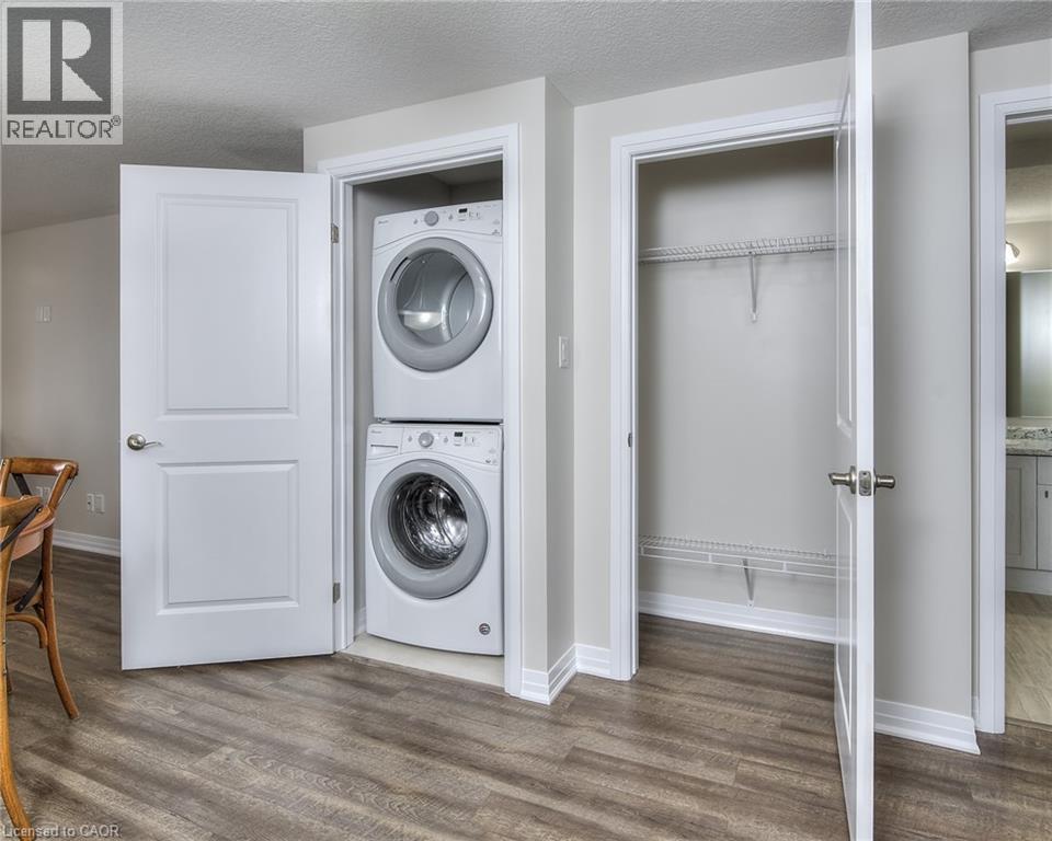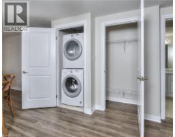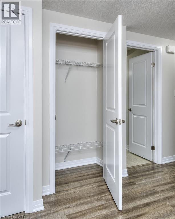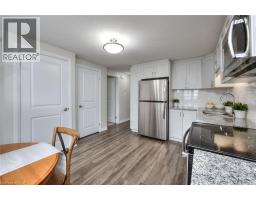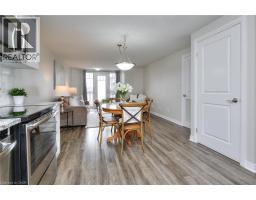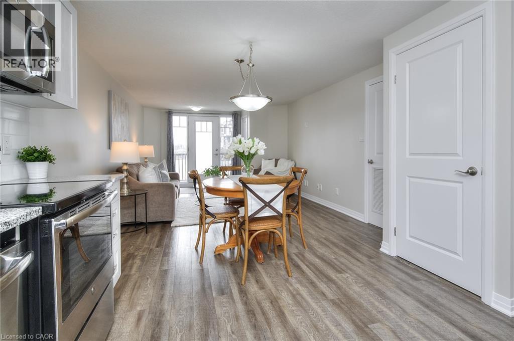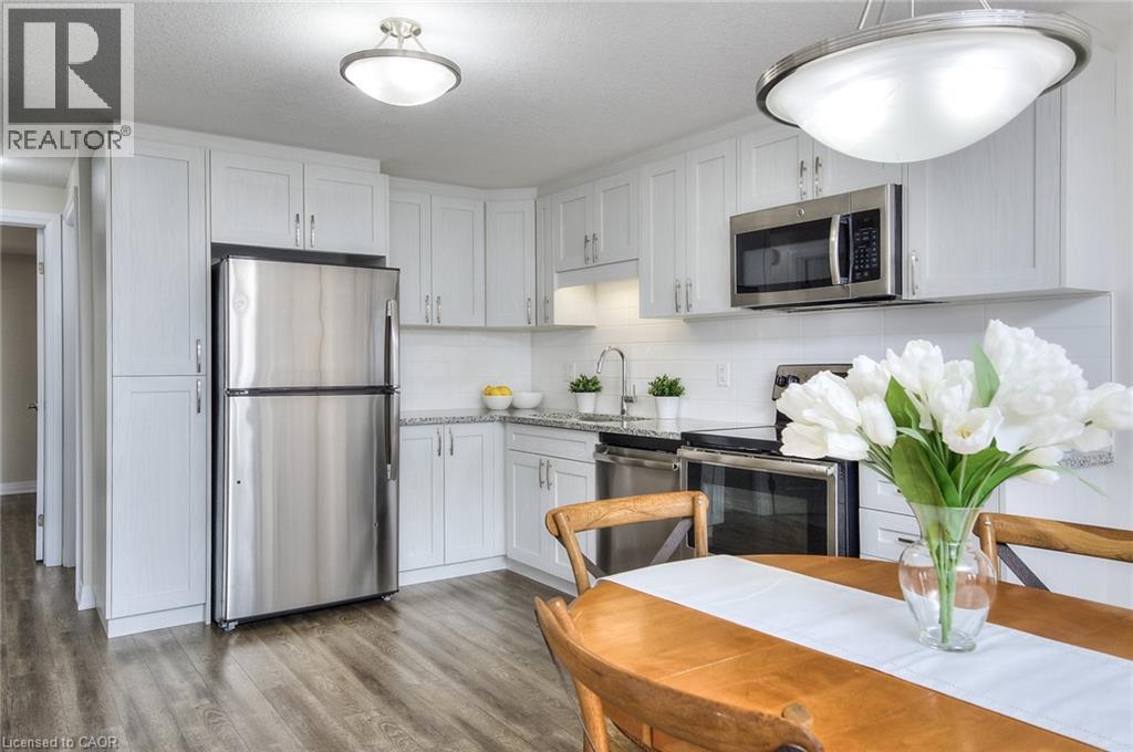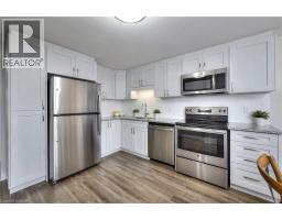 $280.65 MonthlyThis beautiful MAIN FLOOR stacked townhome shows like a model and features over 865 square feet of bright, open-concept living space – all on a single level! Two good sized bedrooms, ample closet space, one full bathroom and in-suite full sized laundry compliment the stylish principal living spaces on display here. Completely carpet-free with upgraded luxury vinyl plank flooring and freshly painted throughout. The upgraded kitchen features a large built-in pantry alongside the refrigerator, as well as stylish granite countertops. This unit’s premium location is settled at the edge of the development, and its spacious private patio overlooks absolutely beautiful mature woodland – all while being only five minutes from the many amenities of the Sunrise Shopping Centre, excellent schools and the expressway at Homer Watson Boulevard. One dedicated parking spot is included! Main floor units do not come for sale often and this one is move in ready! (id:46441)