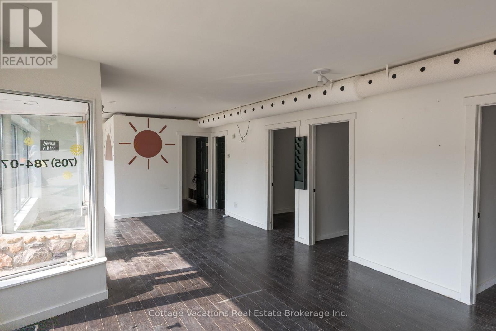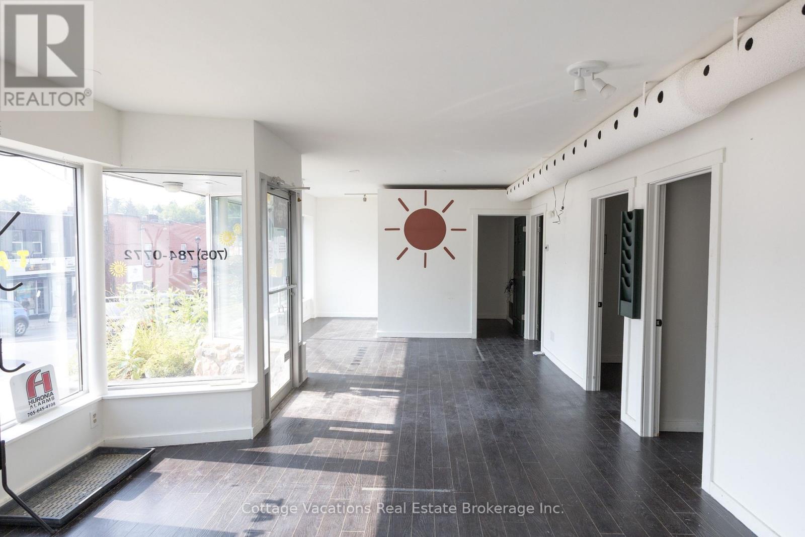 A prime location in the heart of Downtown Huntsville. Great street front exposure, located near the intersection of Main St. and Brunel with a rare and commanding 33' of frontage at street level (on Brunel Rd). The 921 sqft. space is set up with 3 offices, an open common area with reception area, and one washroom. Located in the Central Business District with C7 zoning affording a multitude of permitted uses. 1 dedicated parking spot. Possession for April 1, 2025. TMI is payable by tenant in addition to base rent. (id:46441)