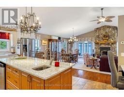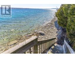Pristine Waterfront Sanctuary on Colpoy's Bay Experience the pinnacle of Bruce Peninsula living with this custom-built legacy home, offered for the first time by its original owners. Boasting 125ft of premium shoreline on Colpoy's Bay, this property is a rare masterclass in waterfront design, created for family memories and effortless entertaining. The Waterfront & Grounds with a stunning landscaped lot features a gentle slope to the water's edge, providing easy access for swimming or docking your boat. Enjoy unparalleled views from multiple vantage points, including two water access points, expansive waterside decks, and a dedicated viewing deck. The lush gardens offer several private sitting areas to soak in the serene Georgian Bay atmosphere. Main Level Luxury: The open-concept interior is designed to keep the water in sight from almost every room. Chef's Kitchen: Features soaring cathedral ceilings, quartz counters, and a large central island. Sunroom: A bright 3-season retreat with panoramic views and double-door access. Primary Suite: An expansive retreat with double doors leading to a courtyard and the triple detached workshop. Flexibility: A large laundry room offers potential as an extra bedroom, complemented by a 4pc bath and 2pc powder room. The central living area is anchored by a cozy fireplace for cool lakeside evenings. Lower-Level Entertainment: The walk-out lower level is a dedicated hub for guests, featuring a large family room with a custom bar and direct access to the waterside patio. Two oversized bedrooms, a 3pc bath, and a massive storage room complete this functional space. Prime Location Located in a premier retirement and recreation enclave, you are just 7 minutes from Wiarton, offering quick access to hospitals, banks, groceries, and shops. Discover the perfect blend of privacy, custom craftsmanship, and breathtaking waterfront enjoyment on the Bruce Peninsula. (id:46441)