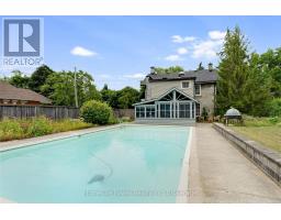 Few homes capture both history and possibility the way 2 Alwington Avenue does. Set on a fully fenced corner lot of ~0.36 acre (15,950 sq ft) in Kingstons most distinguished neighbourhood, this limestone residence is more than a home it is a private estate within the city. A property of this scale is exceptionally rare downtown, offering the space, privacy, and flexibility most can only dream of. Inside, light pours through oversized windows, animating gracious rooms designed for both everyday living and memorable gatherings. Every corner of the house feels designed for connection whether with family, guests, or the outdoors. With five bedrooms plus a study (6th Bedroom Potential) and Five (5) baths across 3 levels, the home easily accommodates a growing family or multigenerational living. Period details, wide-plank floors, abundant storage, and fine wood trim underscore its enduring character. Yet the story extends far beyond the walls. The fully fenced grounds unfold into a true city oasis: swim in the in-ground pool, dine on the stone patio, and let children play safely on the expansive lawn. A detached 700 sq ft garage, positioned at the far end of the lot, provides parking and workshop/studio potential and strengthens the sites flexibility. And with a lot of this size, the future holds exciting possibilities. The frontage and depth suggest potential for additional lots or a thoughtful redevelopment (subject to approvals), adding another layer of value to an already remarkable property. Cherished by one family for over five decades and marked by a heritage plaque (c.1850), this residence offers both stature and opportunity. A rare convergence of land, location, and legacy: moments to hospitals and campus, steps to lakefront trails, and room to grow for decades. If you have been waiting for a Kingston address worthy of being a forever home, this is the one. (id:46441)