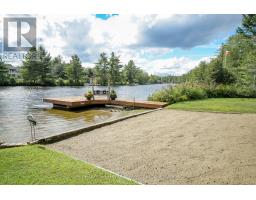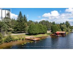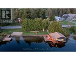 With 150 frontage accessing Lake Muskoka, a grandfathered boathouse, two docks, a fully renovated home and a guest bunkie you literally have everything that you could ever want in a Muskoka property! There is plenty of room for the whole family in a renovated home (1800 sq.ft.)+/- that boasts solid hardwood floors, large custom kitchen, granite counters with high-end appliances, PFA, CA, a stunning original stone wood burning fireplace and a recently renovated large primary suite with large custom walk-in closet, beautiful custom primary bath and walkout to the rear private hot tub retreat. The main 4 piece bath satisfies the needs of the second bedroom as well as any guests. The custom vaulted ceiling with six skylights provides natural light that adds an ambiance often enjoyed while overlooking the waters edge. Additionally the main floor offers an open, bright office. The lower level contains another bedroom, full bathroom, rec room with fireplace and a complete bar as well as an excellent storage room and full laundry room. The guest bunkie can host up to 6 people comfortably, has a 2-piece bath, propane fireplace and AC, so it is excellent for overflow guests year round. The grandfathered boathouse (2010) and two docks are positioned to offer full usage of your frontage that is level with its own beach giving ample room for enjoying every game the family wants to play. The detached oversized (900 sq.ft)+/- double garage has a 3rd garage door to the rear yard for ease of access. The property is fully landscaped and the circular driveway is newly paved. This is a location that is close to town yet just a quick ride to Lake Muskoka for all of the destination boating you could ask for. (id:46441)