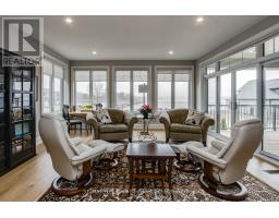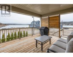 Almost new! Beautiful Beausoleil Model with the Bonus Room above the garage. It sits on a fully landscaped premium pie-shaped lot with water views from many windows. Across from a small park and access to rental docks for residents only. The Primary bedroom features his & her closets and large 3-piece ensuite with separate water closet. Both levels offer 9' ceilings, 7" baseboards and 3" trim, oak staircase, upgraded 7" white oak engineered hardwood, porcelain tiles, quartz counters. The open concept Chef's kitchen features a generous centre island, upgraded appliances, ceiling height cabinets, loads of drawers; and separate pantry cupboard for maximum storage. Sundrenched and flexible open concept layout provides ample space for family and entertaining. Walk out to covered deck from sunroom with walls of windows. Access to Storage area under deck off the lower patio. Full unfinished 6 1/2' storage and utility basement with full staircase for all of your off season items. Oversized garage with room for full size vehicles and separate work area. (id:46441)